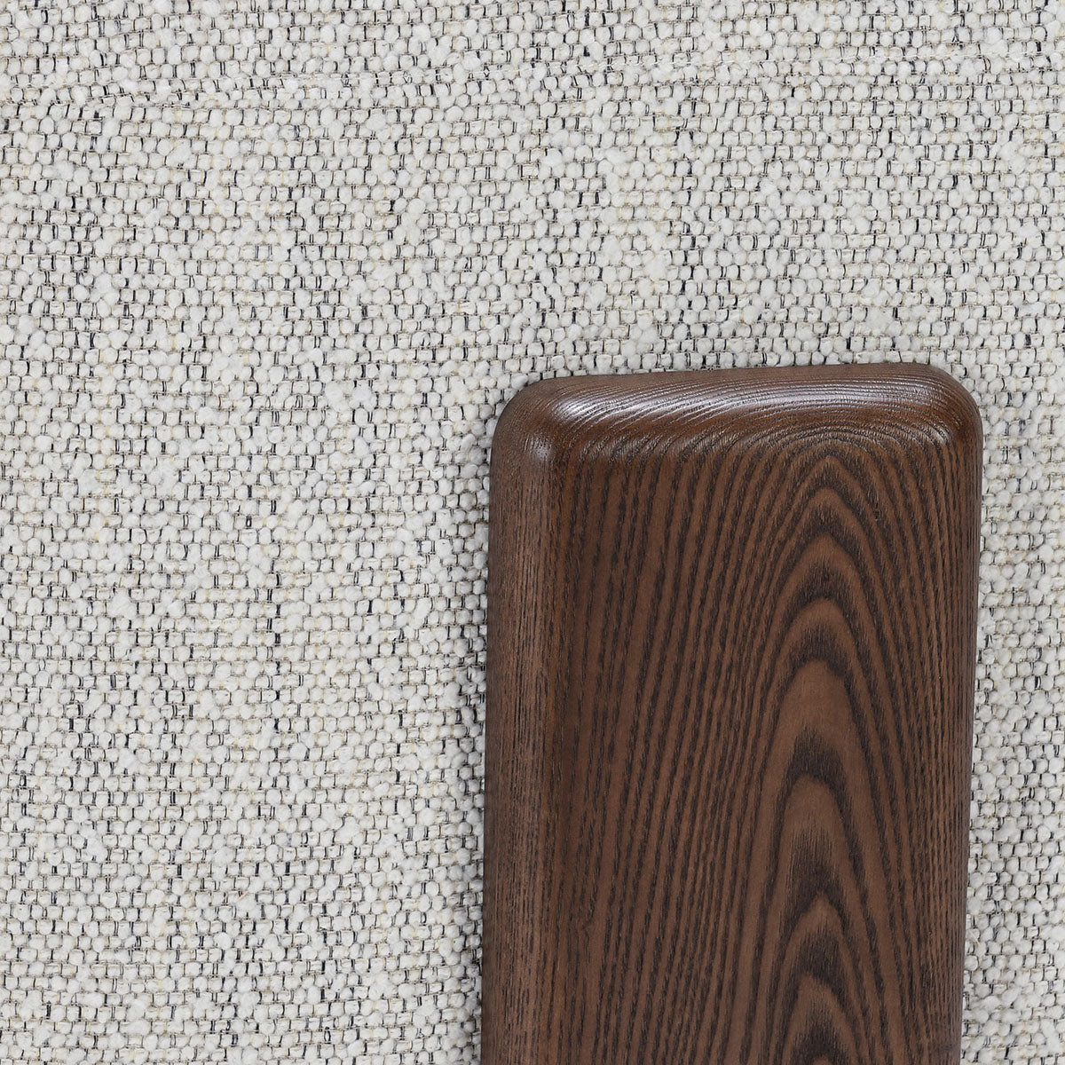 - Upholstered using a soft, boucle fabric made with variegated yarns that provides a heathered and textured appearance.