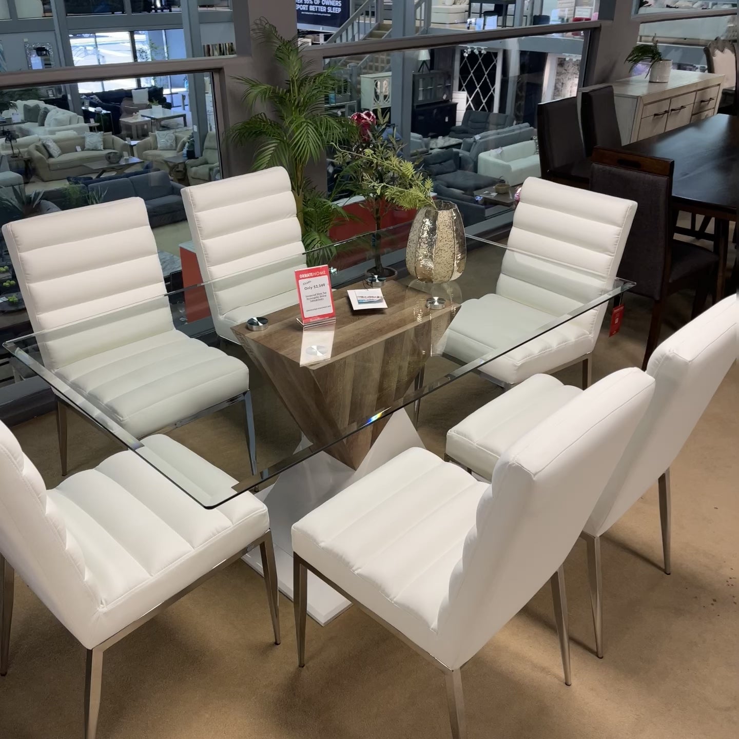 Combined with plush cushioned faux leather dining chairs to keep guests resting comfortably, it provides the perfect backdrop for entertaining and sharing many memorable meals.