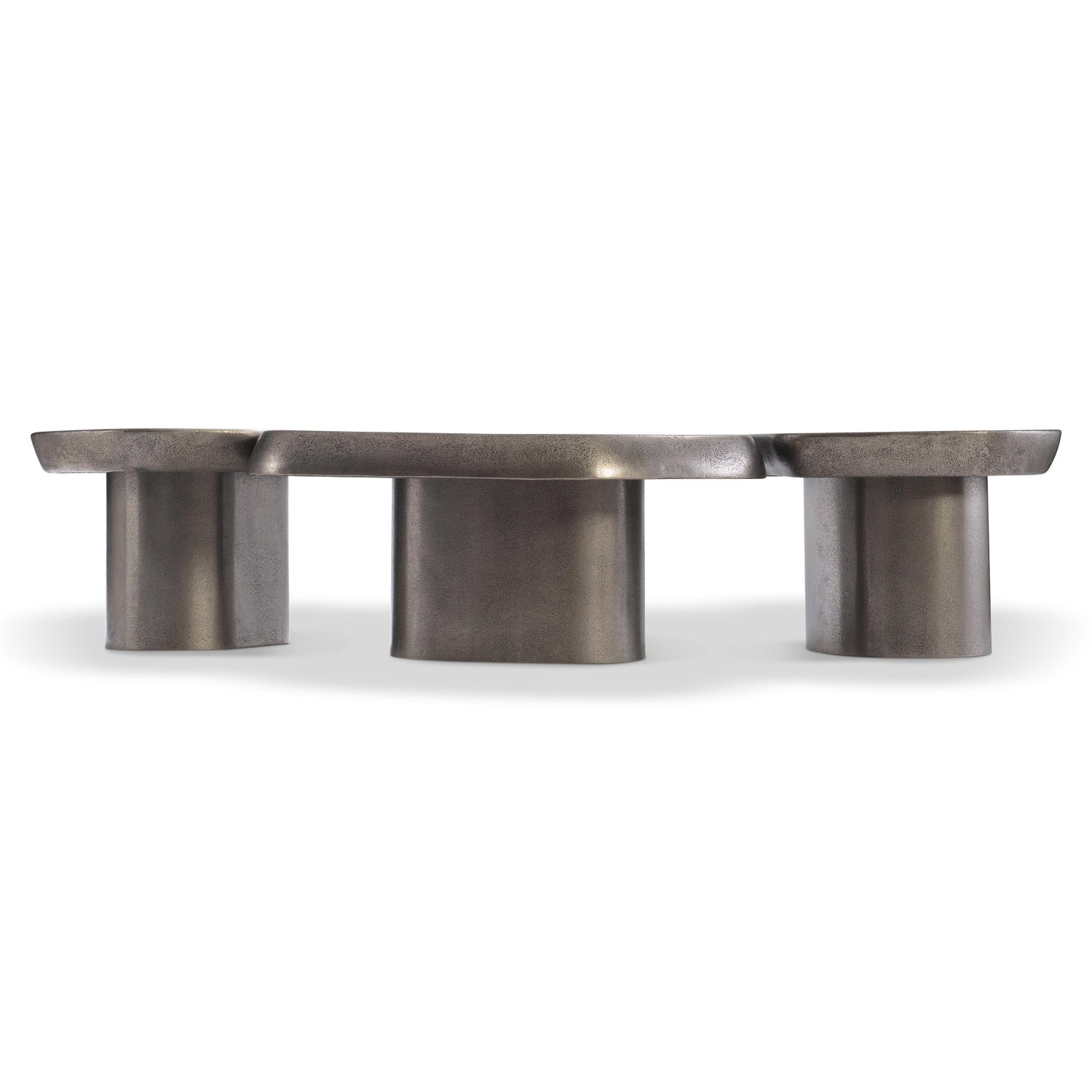 - Medium size in a set of three different-sized tables that collectively form a bunching cocktail table