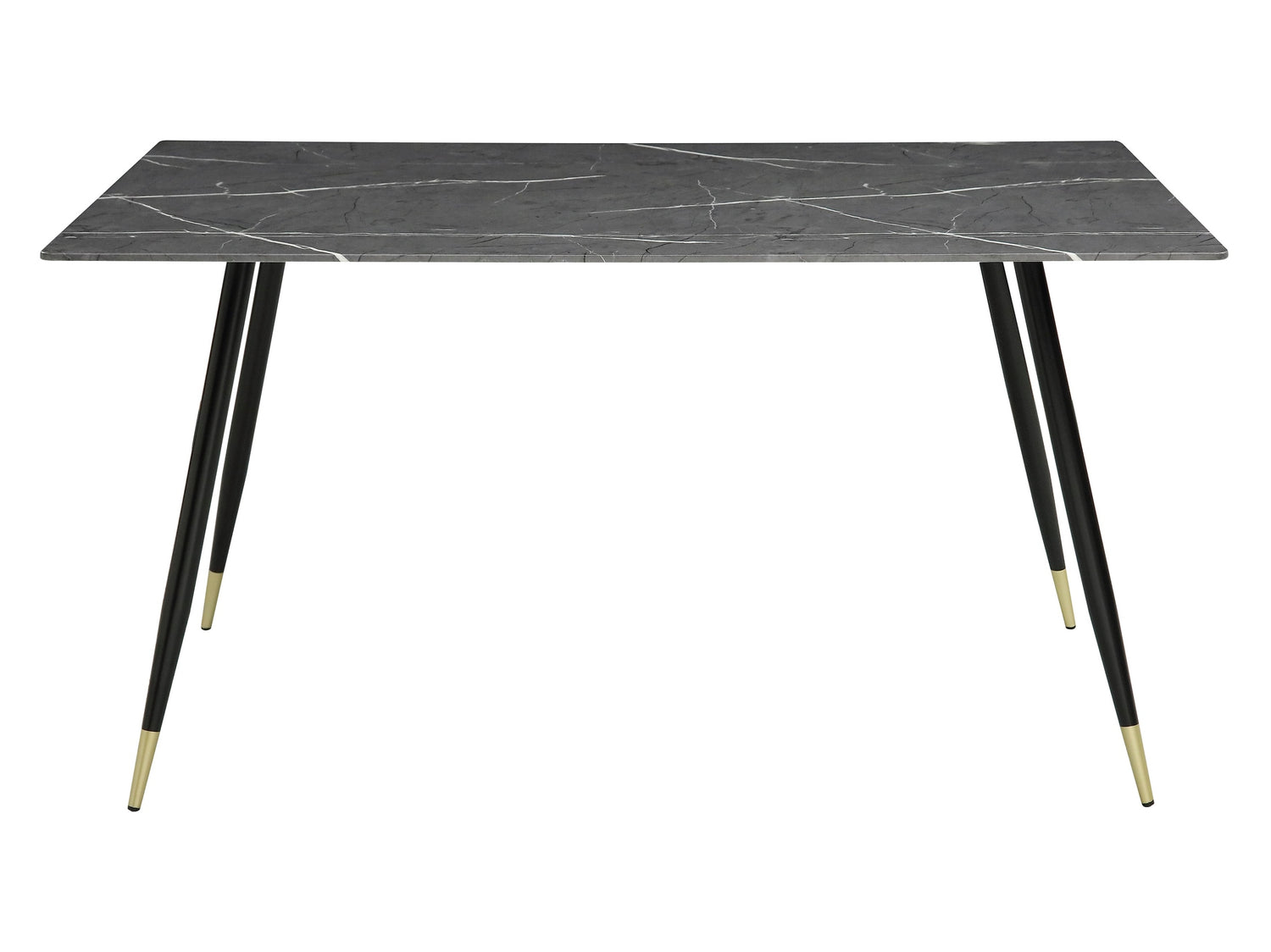 Comprised of classic elements of modern design, the Clemente Collection blends clean lines, and complementing color, with hints of refined sophistication to create a table for your casual dining room. Gray marble-print tempered glass is perched atop black metal legs, their tips capped with gold-finished metal accent.