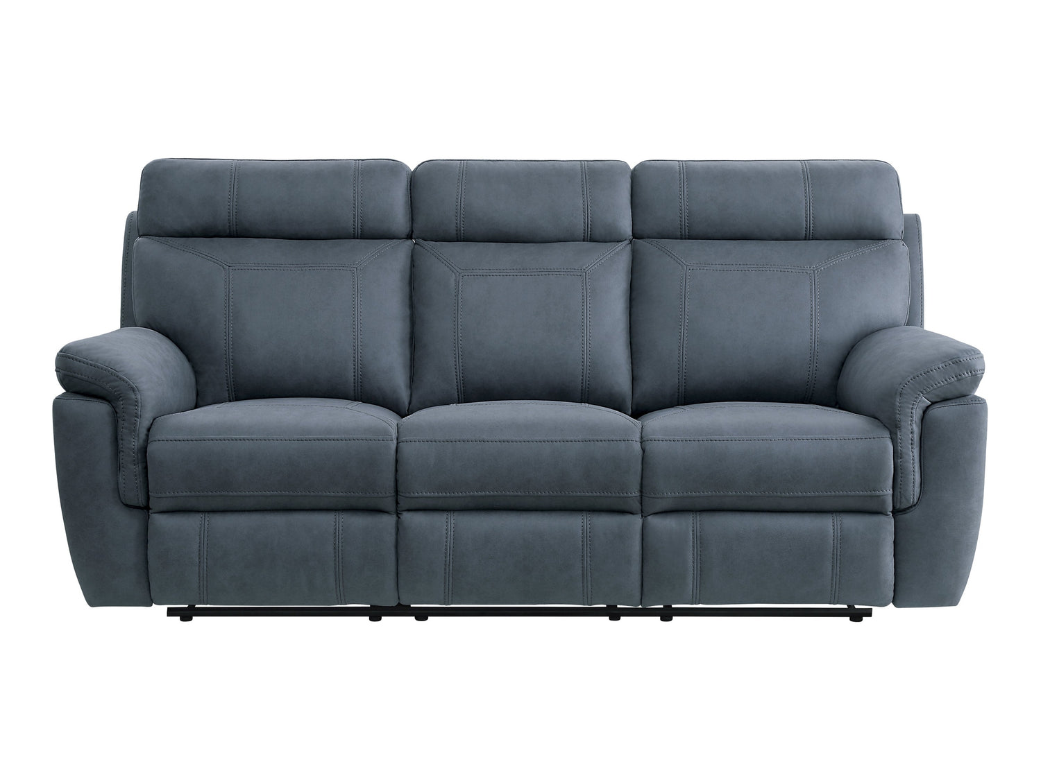 The modern profile of the Clifton Collection serves to provide comfort, function and style to your home’s casual living room. The blue polished microfiber that covers the plush arms and seating of the sofa lends to the decorative versatility of the collection. The sofa features dual reclining ends as well as a drop-down center seat back with cup-holders and tabletop. Manual motion mechanisms operate with the pull of a side-mounted tab, that once engaged, take you from seated to reclined in an easy motion.