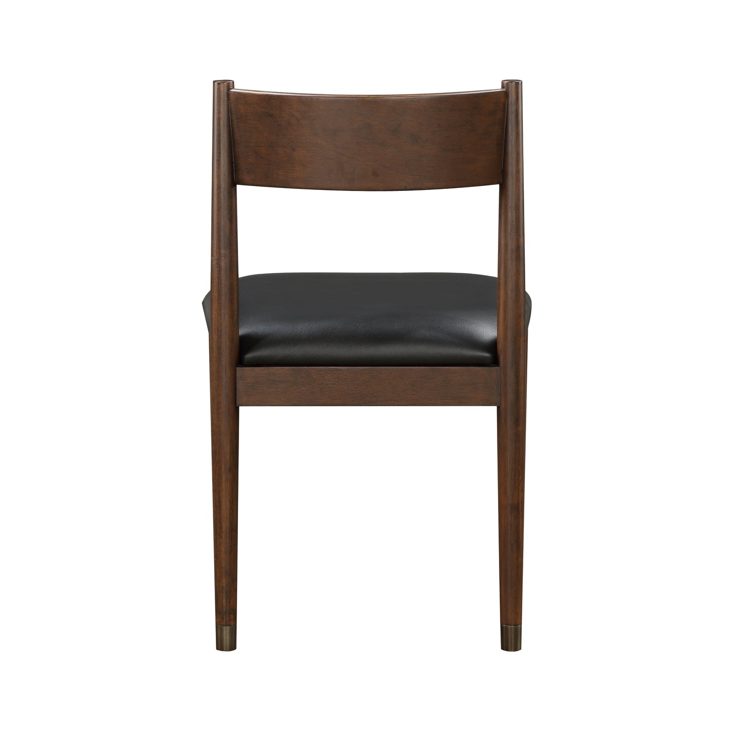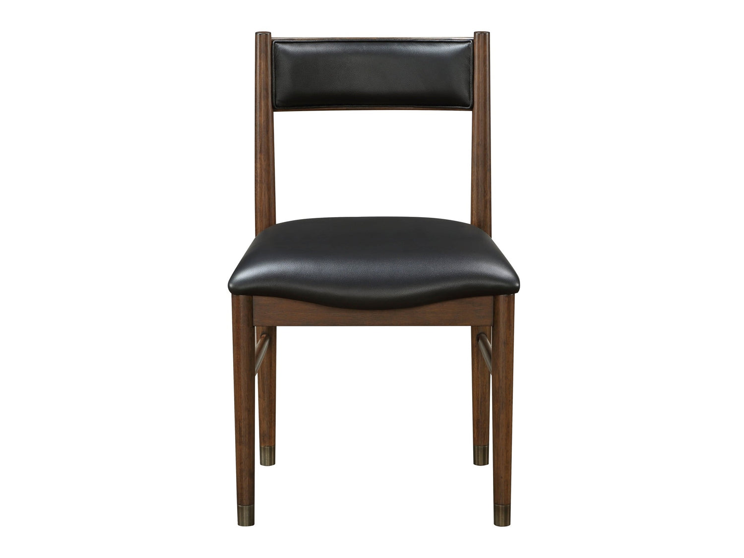 The versatile vibe of your home’s décor provides the perfect environment for the addition of the Clive Collection. The side chair presents a subtle modern profile at home in both contemporary and transitionally styled spaces featuring a black leather seat and back, providing complementing contrast to the cherry finish of the wood frame.
