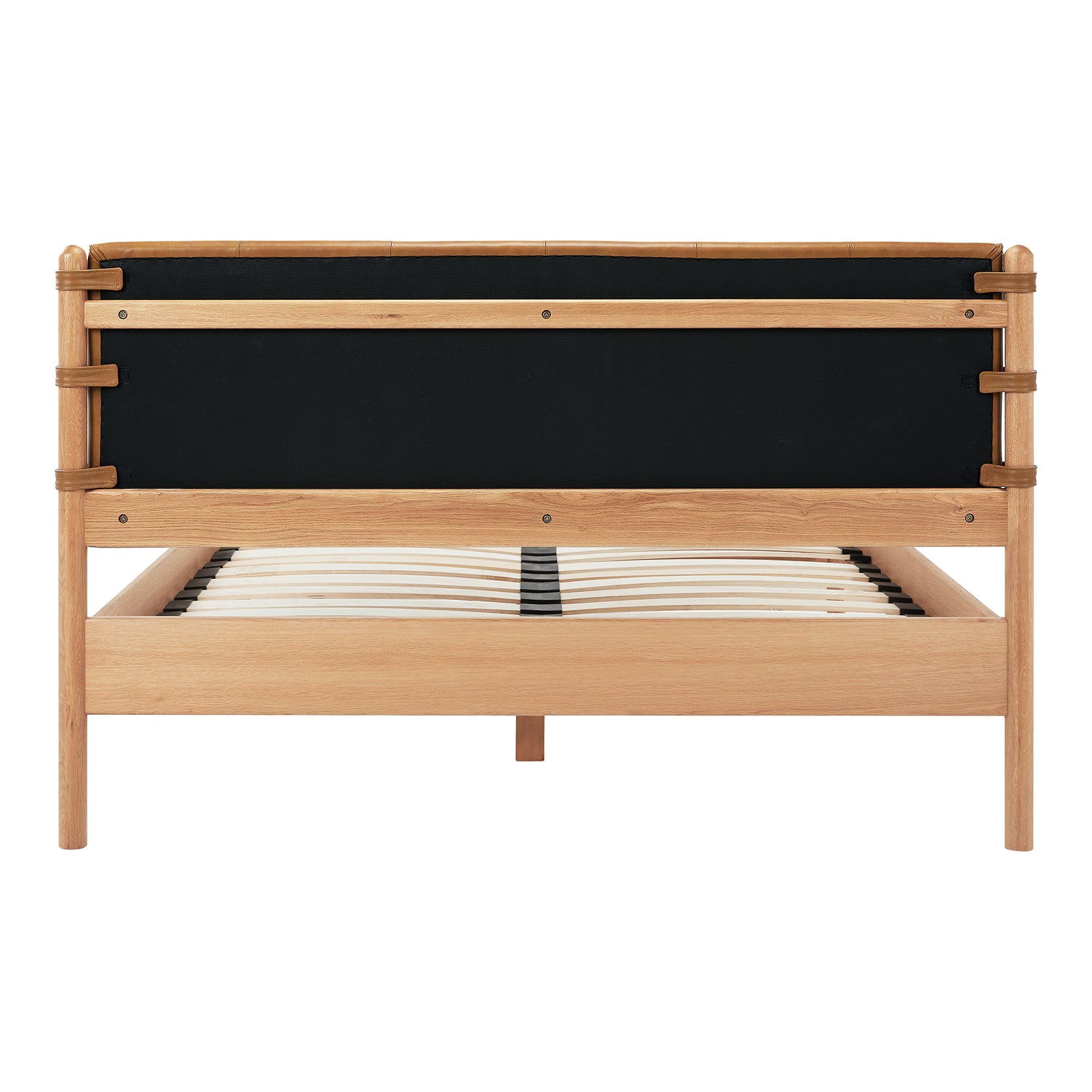- 100% Top-grain leather- Solid oak legs & headboard frame