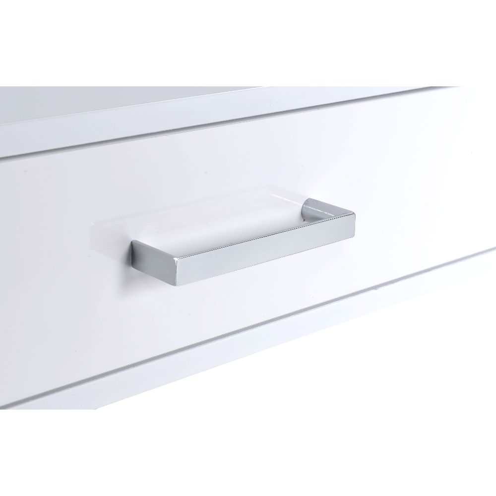 KD, 2 Drw Rectangular Writing Furniture > Office Furniture > Desks w/Metal Base KD Top w/2Drw: White Glossy Finish (Venner, PB) Metal Sawhorse Base: Chrome Finish, Metal Tube (1.2 x 25 x 25mm, 20 x 40mm, 25 x 50mm) (NO Cord mgmt/NO Keyboard Tray) Drw Inside Size: 24" x 15" x 3 Drawer: GLIDE Side Metal (3/4 Ext),