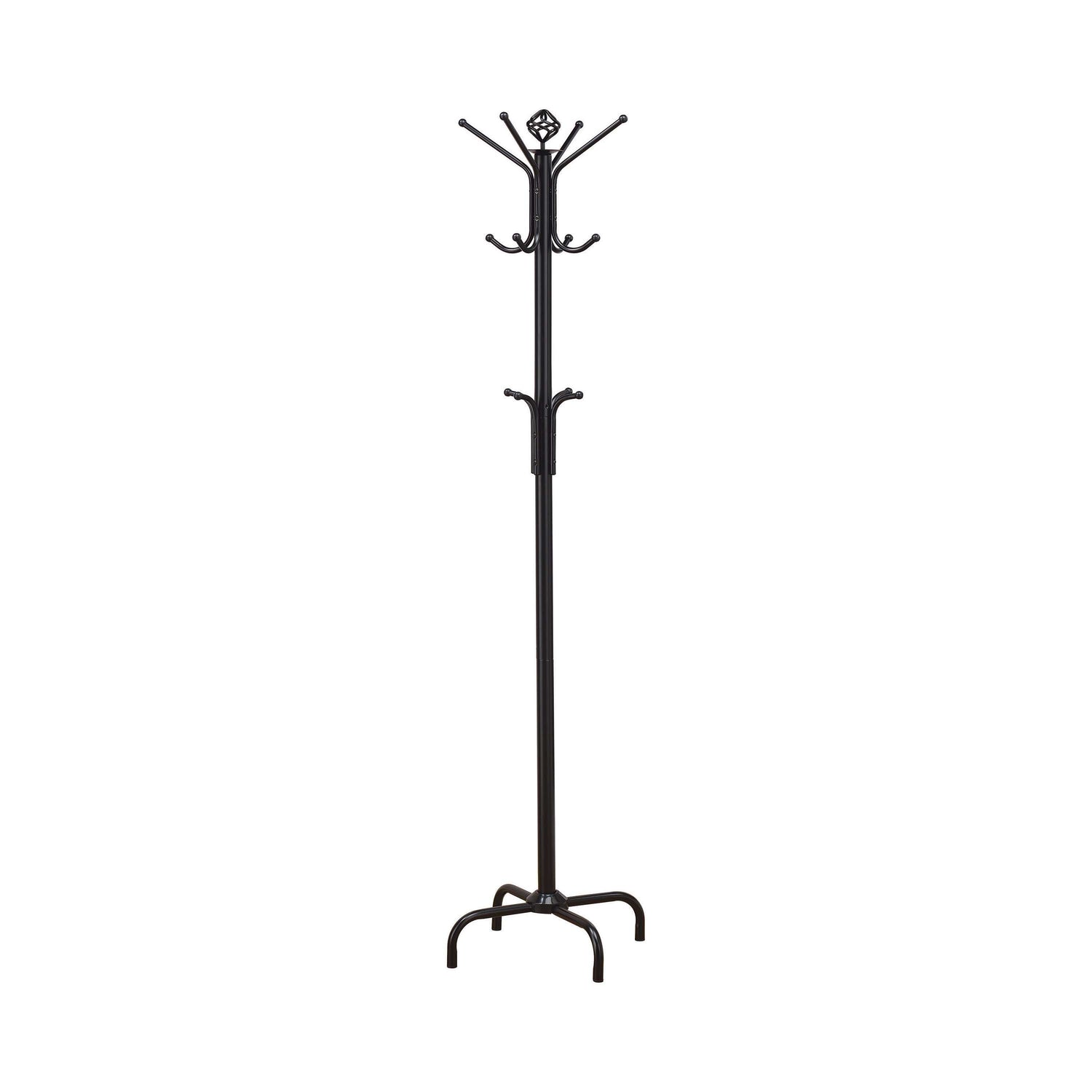 Take your jacket off and stay a while. Ideal for an entryway or mudroom, this sleek, elegant coat rack is sure to delight. Its gracefully curved silhouette exudes cool, contemporary style. Featuring three-tiered hooks, it easily accommodates layers upon layers of outerwear. A bold, black finish adds a lovely finishing touch to give this sturdy coat rack an additional hint of style.