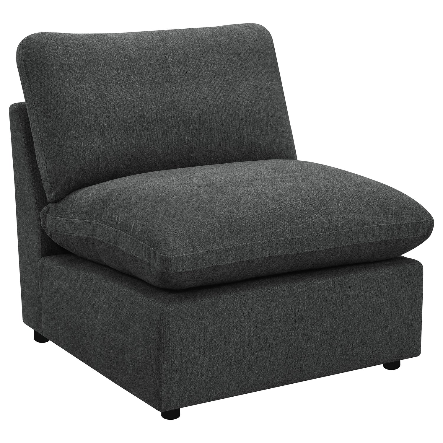 - Sleek, modern design upholstered in dark grey fabric