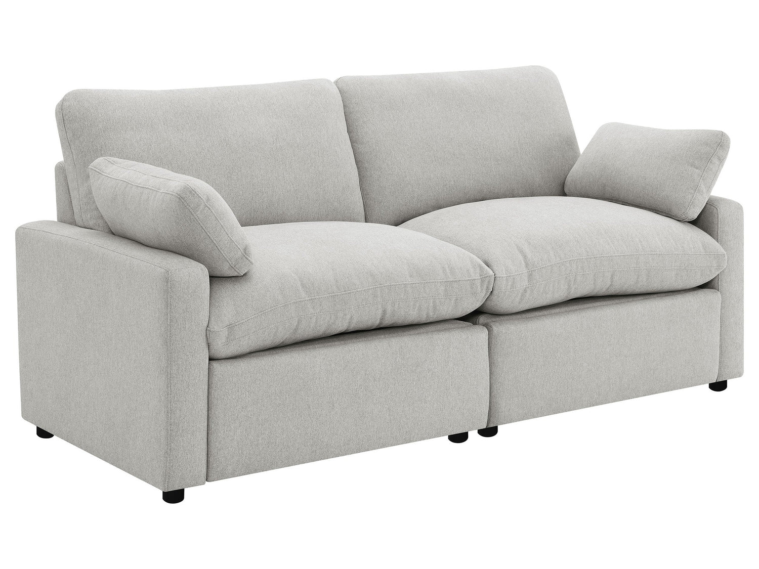 - Includes: One (1) LAF power recliner and one (1) RAF power recliner- Grey upholstered loveseat with sleek, modern design