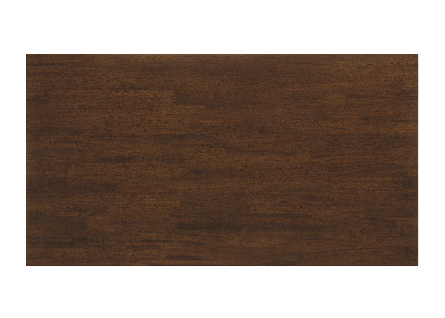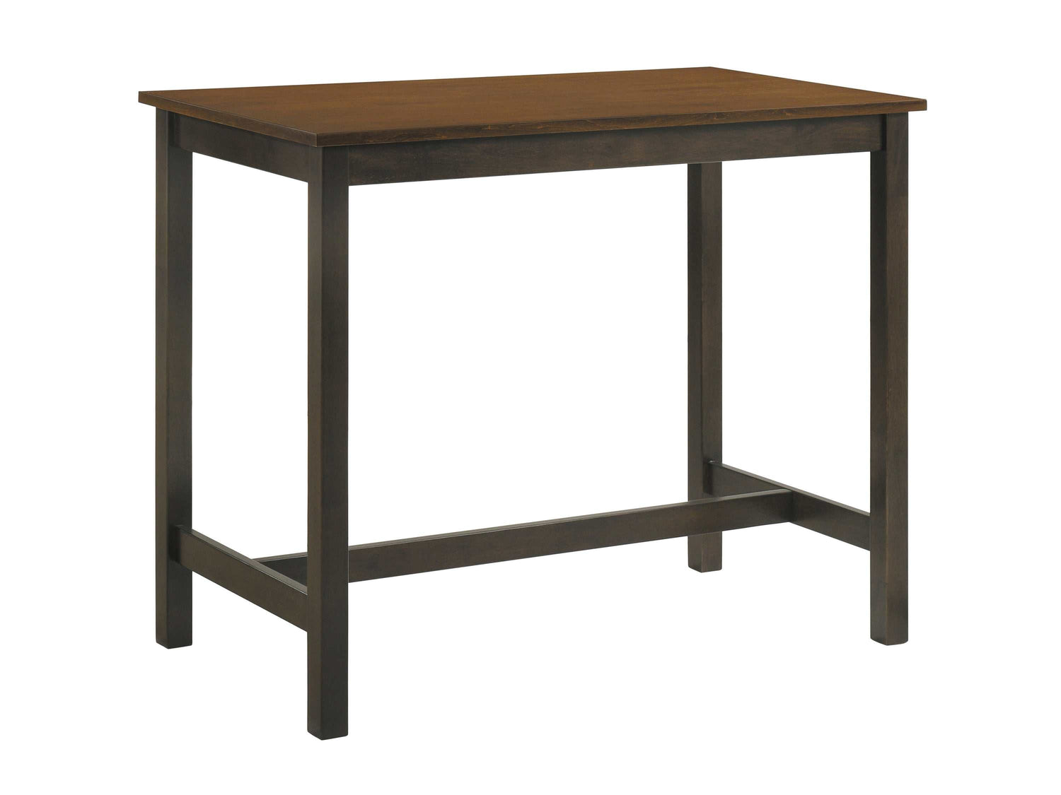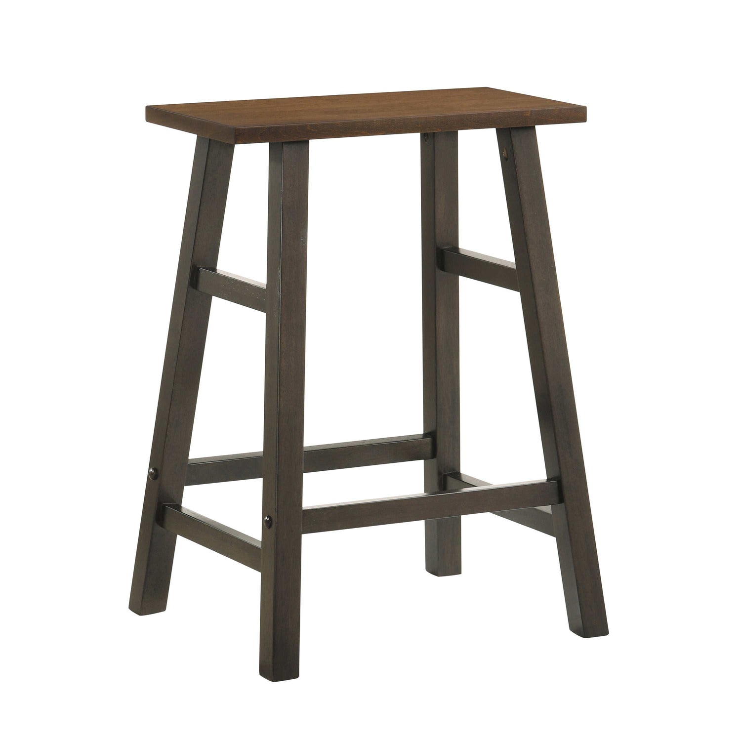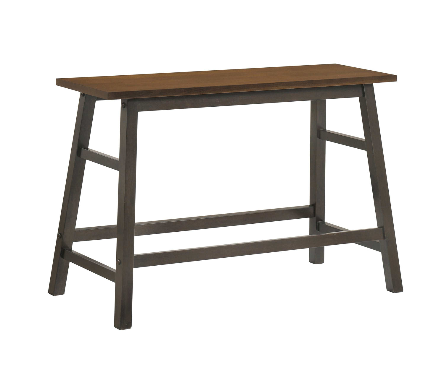 A charming addition to a kitchen breakfast nook or compact dining area, this country four-piece counter height table set gives off modern farmhouse vibes. A two-tone finish offers a subtle contrast and rustic-inspired design. A chestnut finish covers the tops of the table, stools and bench, as the rest on a bold, dark brown finish frame. The narrow rectangular counter height table features a trestle base and straight square legs for a clean lined effect. In addition, the two stools and bench also offer a similar style with square legs that flare out toward the feet and offer a footrest for extra support.