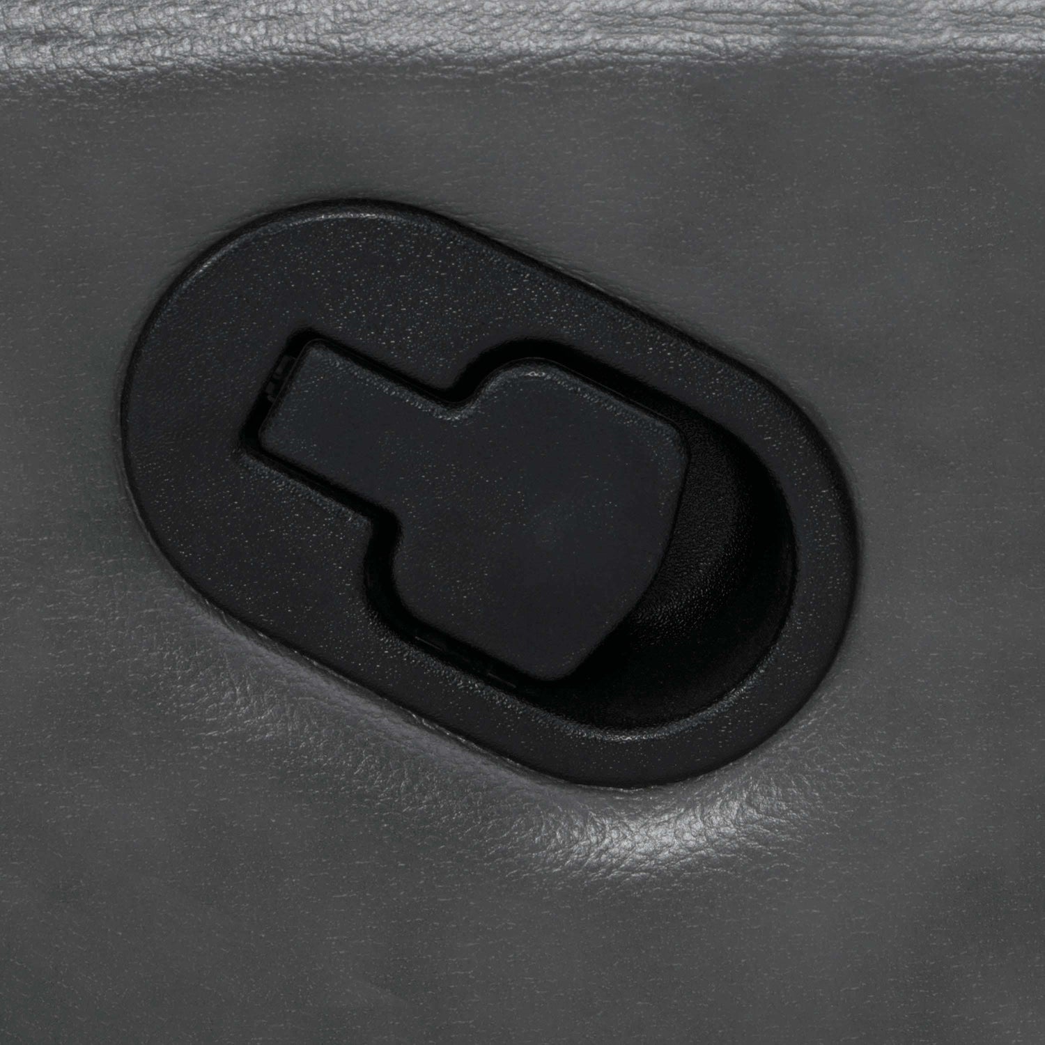 Grey is the trendy color these days and it doesn't look any better than on this opulent motion sofa. It features angled seat backs with extra padded headrests for ultimate luxury. Armrests and even the leg rest on the recliner are padded for extra comfort. Wrapped in the coolest of cool grey leather-like upholstery for a look that's uber-fashionable. This sofa will definitely steal the show in any living room or home rec room.