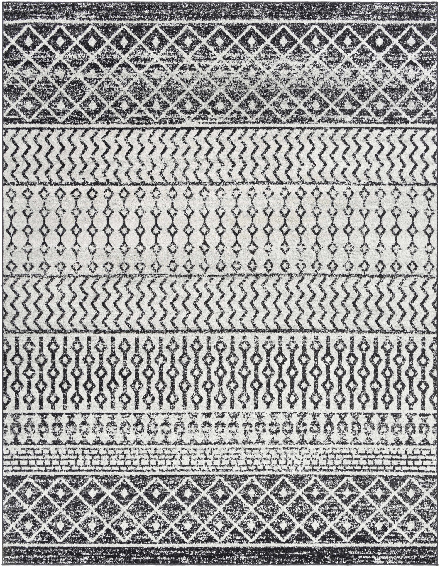 About: Tones of black and white meet on this rug. Be it Boho or Farmhouse, with its versatile design, this rug will match your style regardless. You will fall in love with its fabulous pattern and soft texture. |