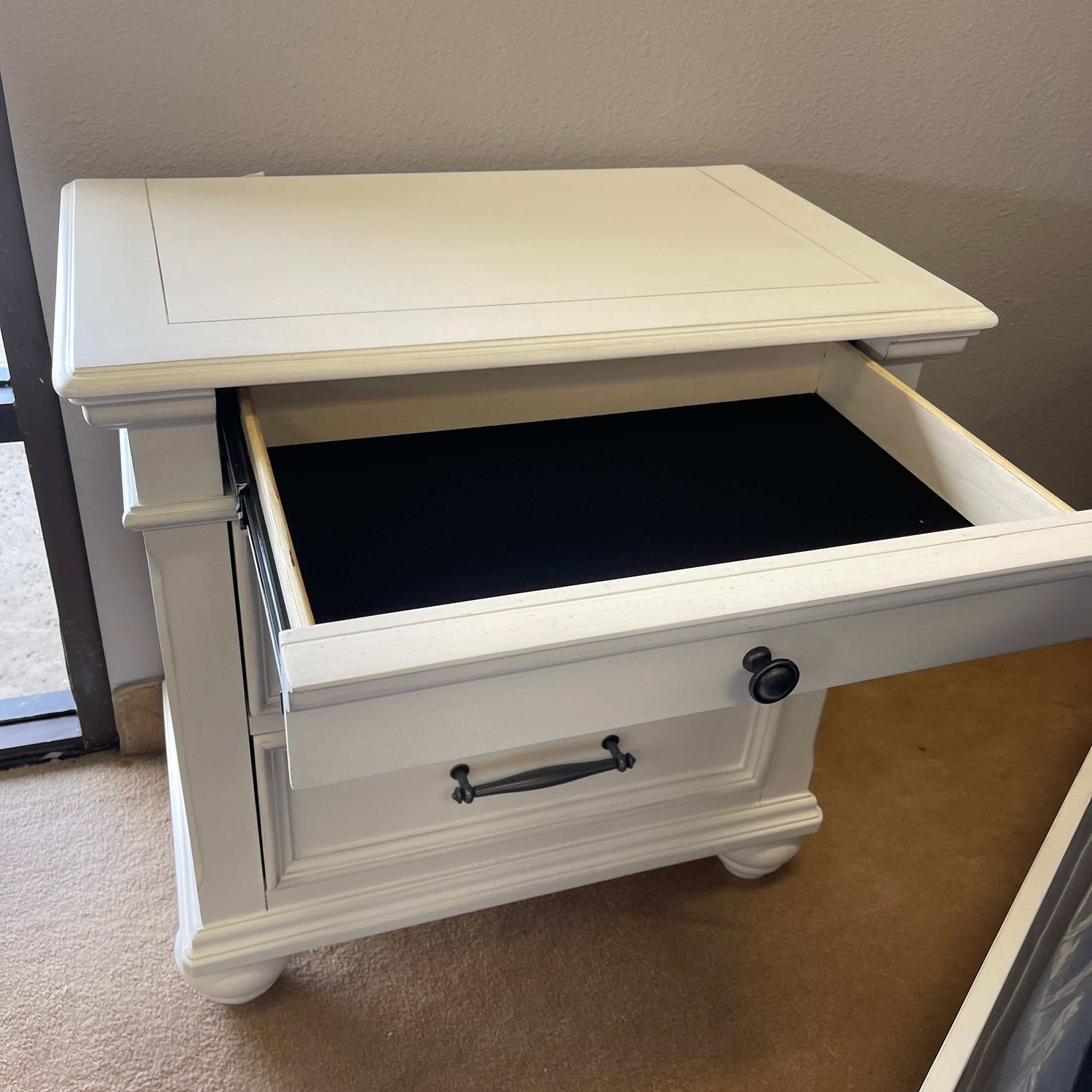- Nightstand: Made with solid wood, veneers and engineered wood
