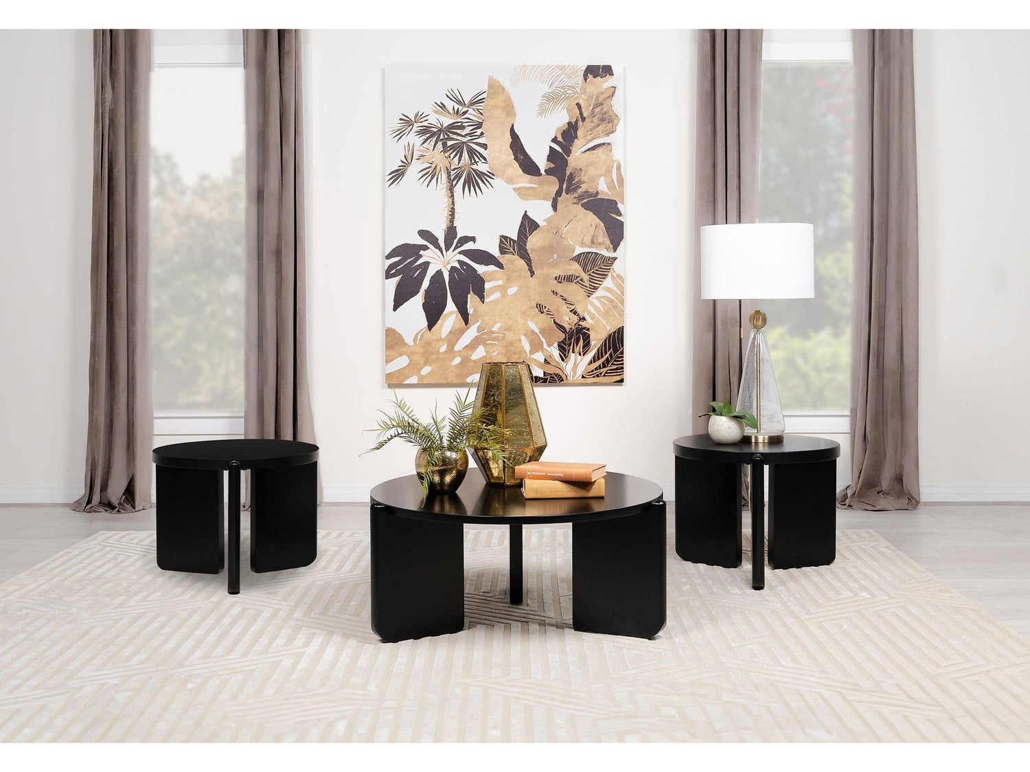 - Coffee table set with bold, modern design and cohesive round tabletops