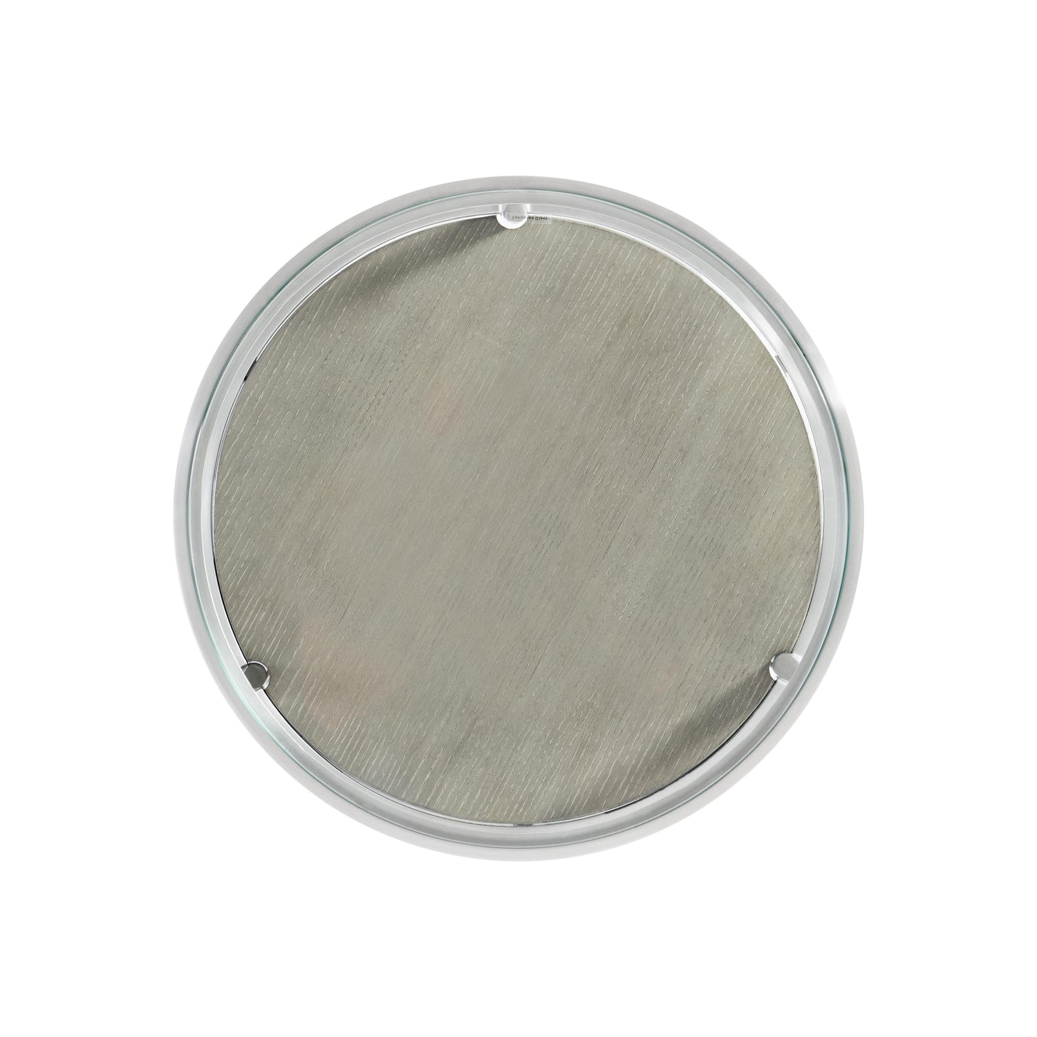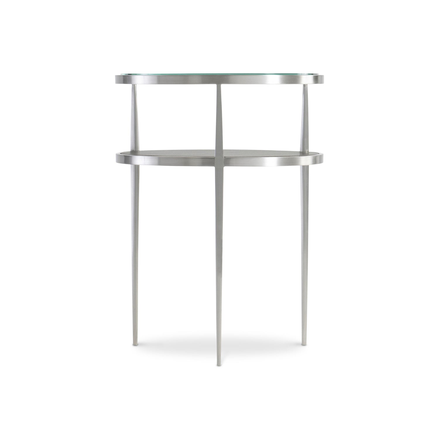 - Metal frame in Brushed Stainless Steel finish with tempered, polished-edge glass top and one wood shelf in Nebbia finish