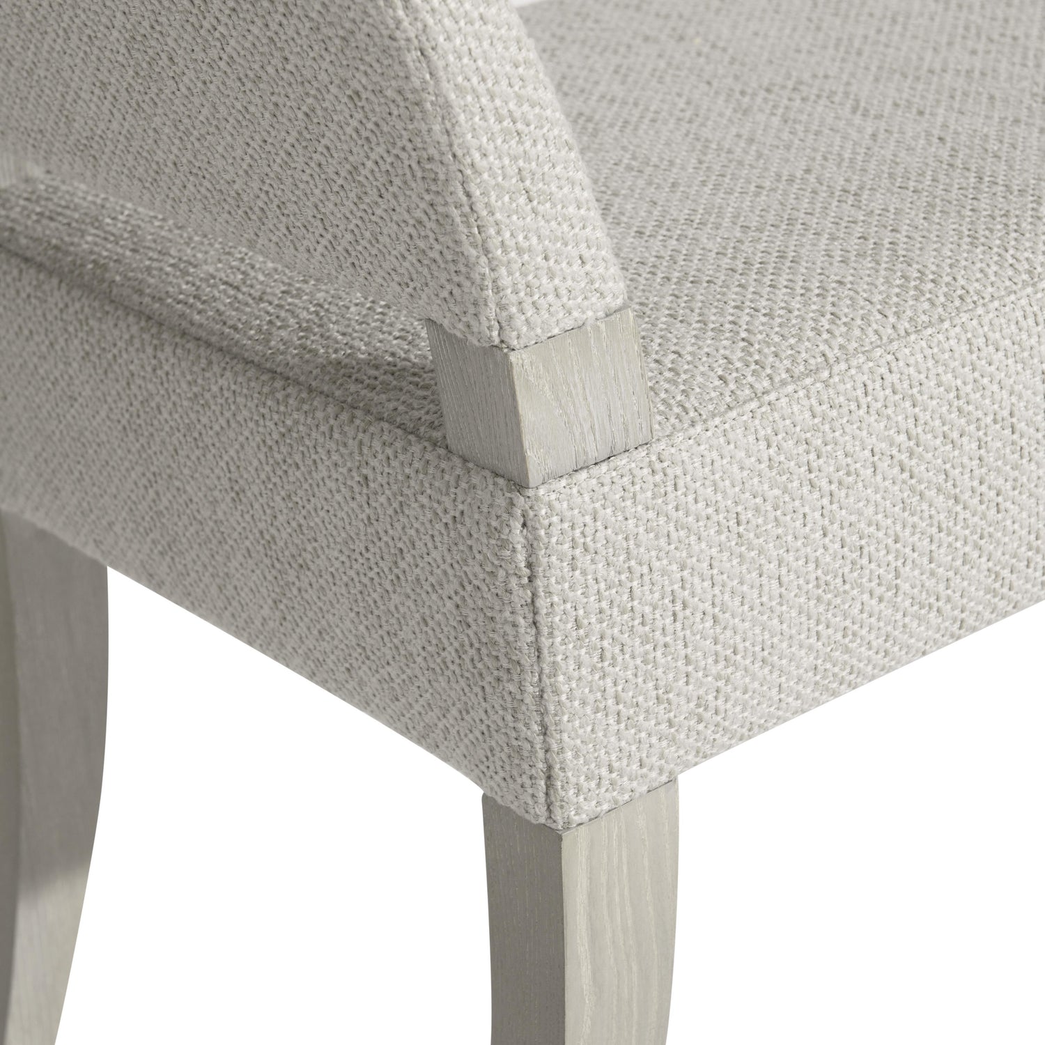 - Foam padded arms and seat with exposed wood posts in Nebbia finish