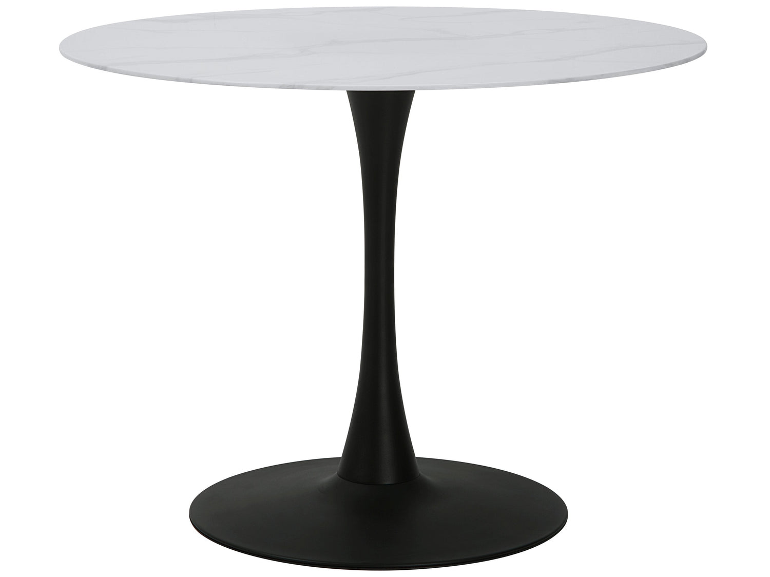 The classic look of the tulip base comprises the modern profile of the Cosimo Collection. The black metal table base rises to support the marble print tempered glass tabletop, its white hue an elegant complement to your dining room’s décor.
