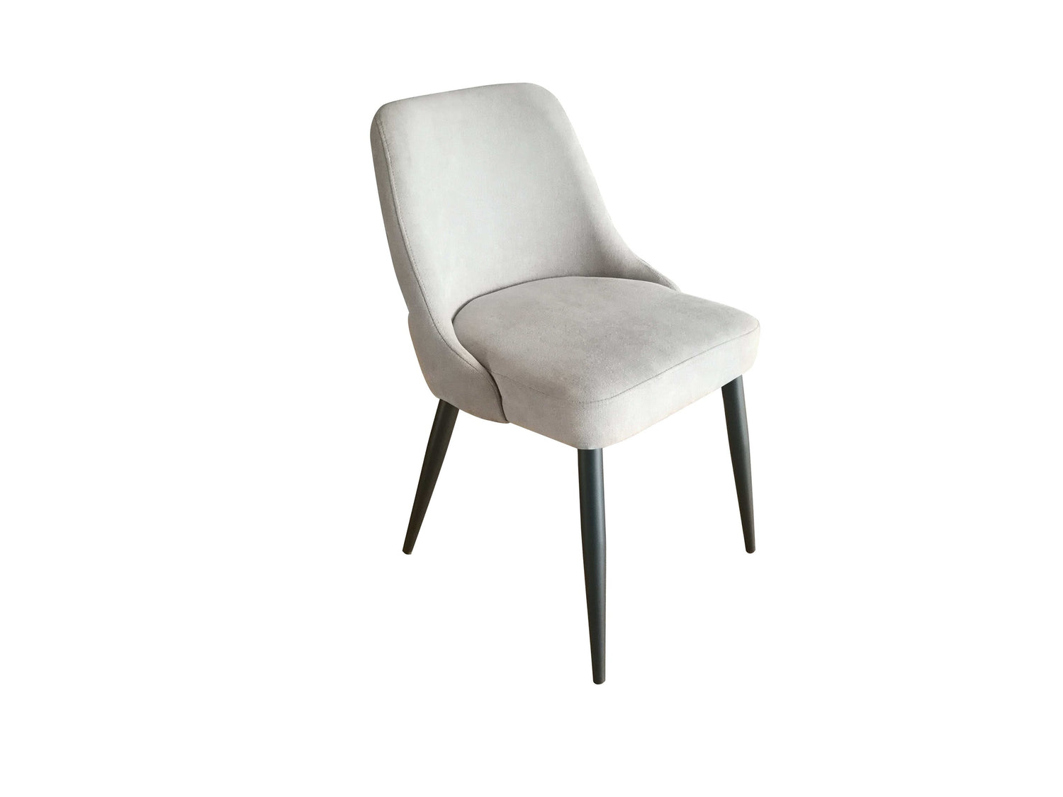 Upholstered curved back dining chairs with unique tufting in the back offered in cream fabric