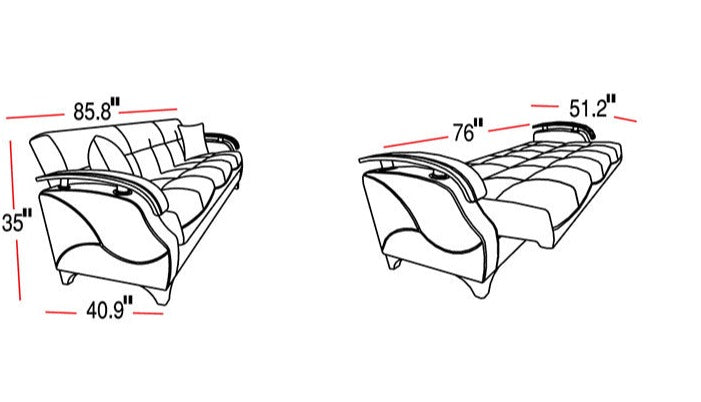 - Sofa Bed: 85.8"L x 40.9"W x 35"H