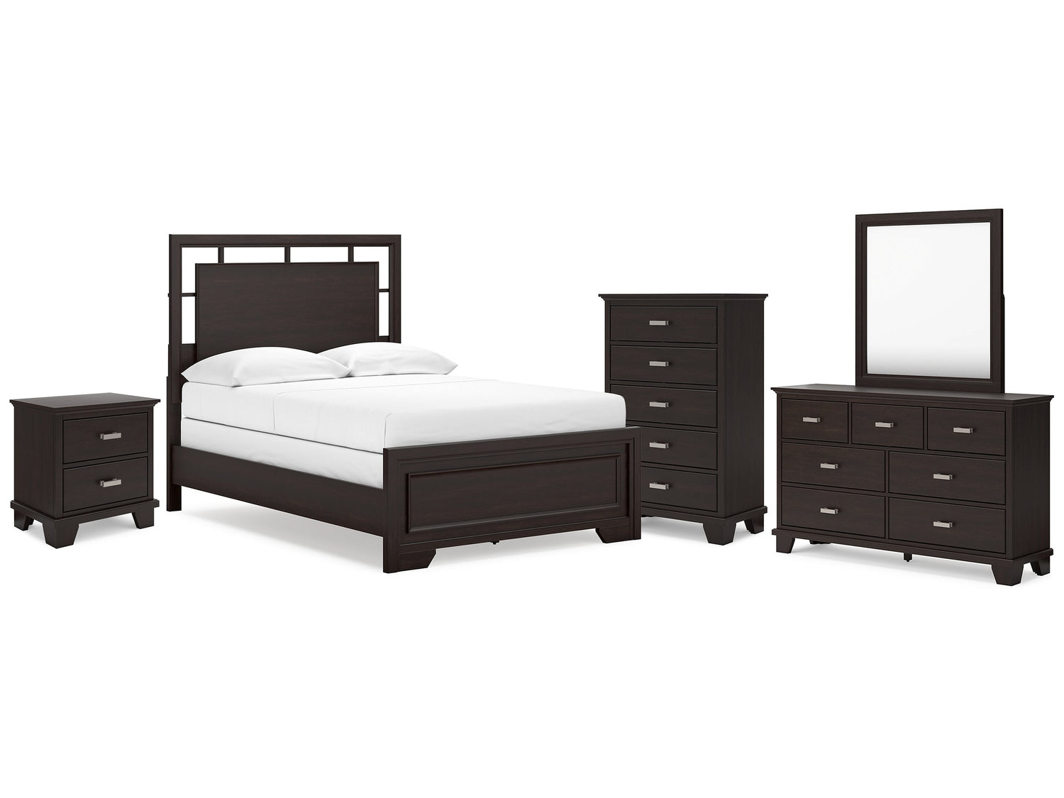 Covetown Dark Brown Full Panel Bed & Dresser & Mirror & Chest & Nightstand