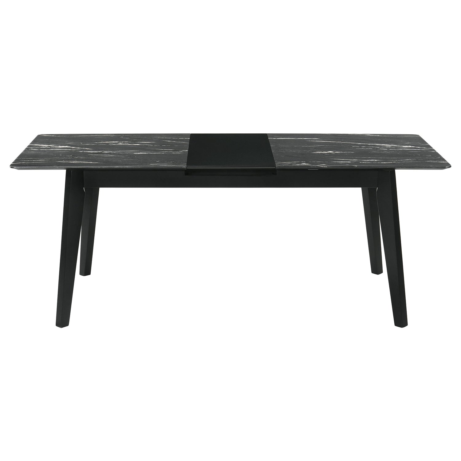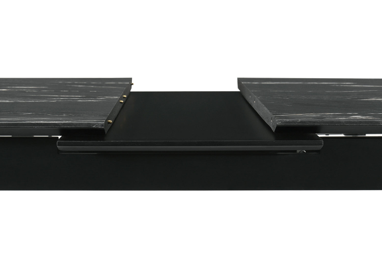 - Elegant 7-piece dining set features a rectangular table with a striking faux marble top
