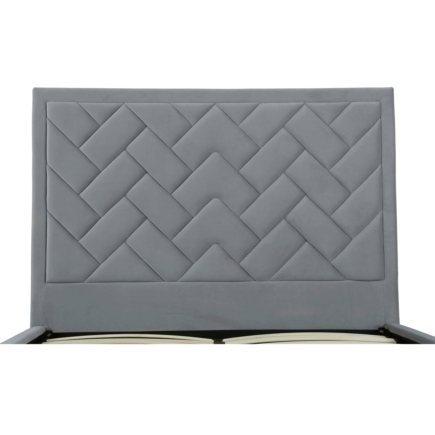 - Features a Chevron Style Weave Stitched Headboard.