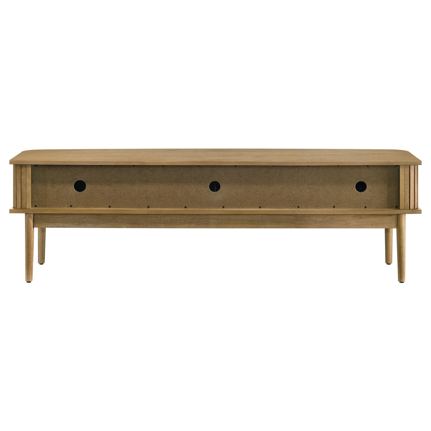 - Back panel includes cord management cutouts for a clean, organized setup,