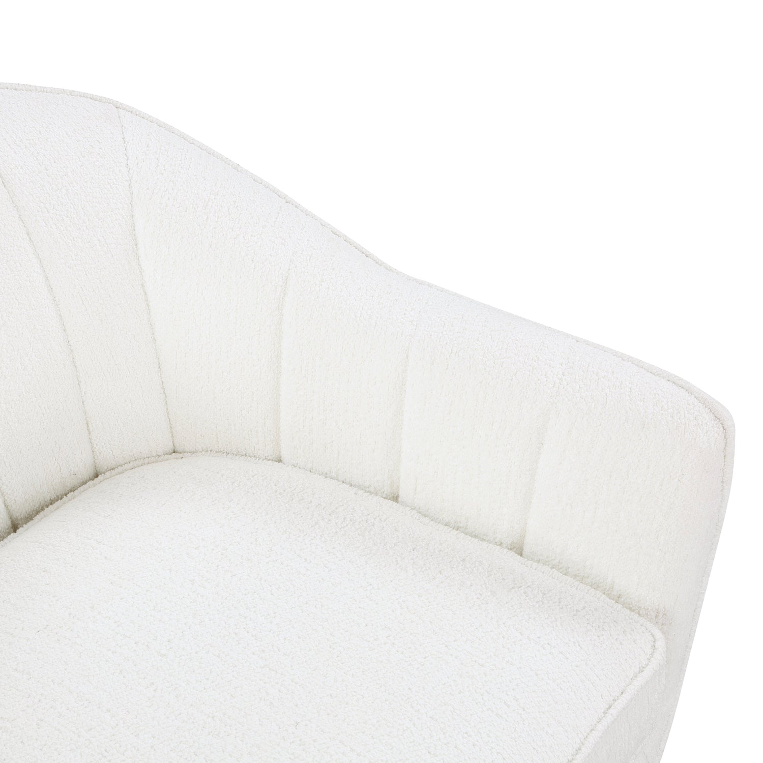 Inspired by the refined styling of the Mid-Century Modern movement, the Cutler Collection presents a tailored profile to pair with your home’s décor. The curved channel-tufted frame envelopes your seated experience while the white textured fabric upholstery is complemented by the brown-finished wood legs.