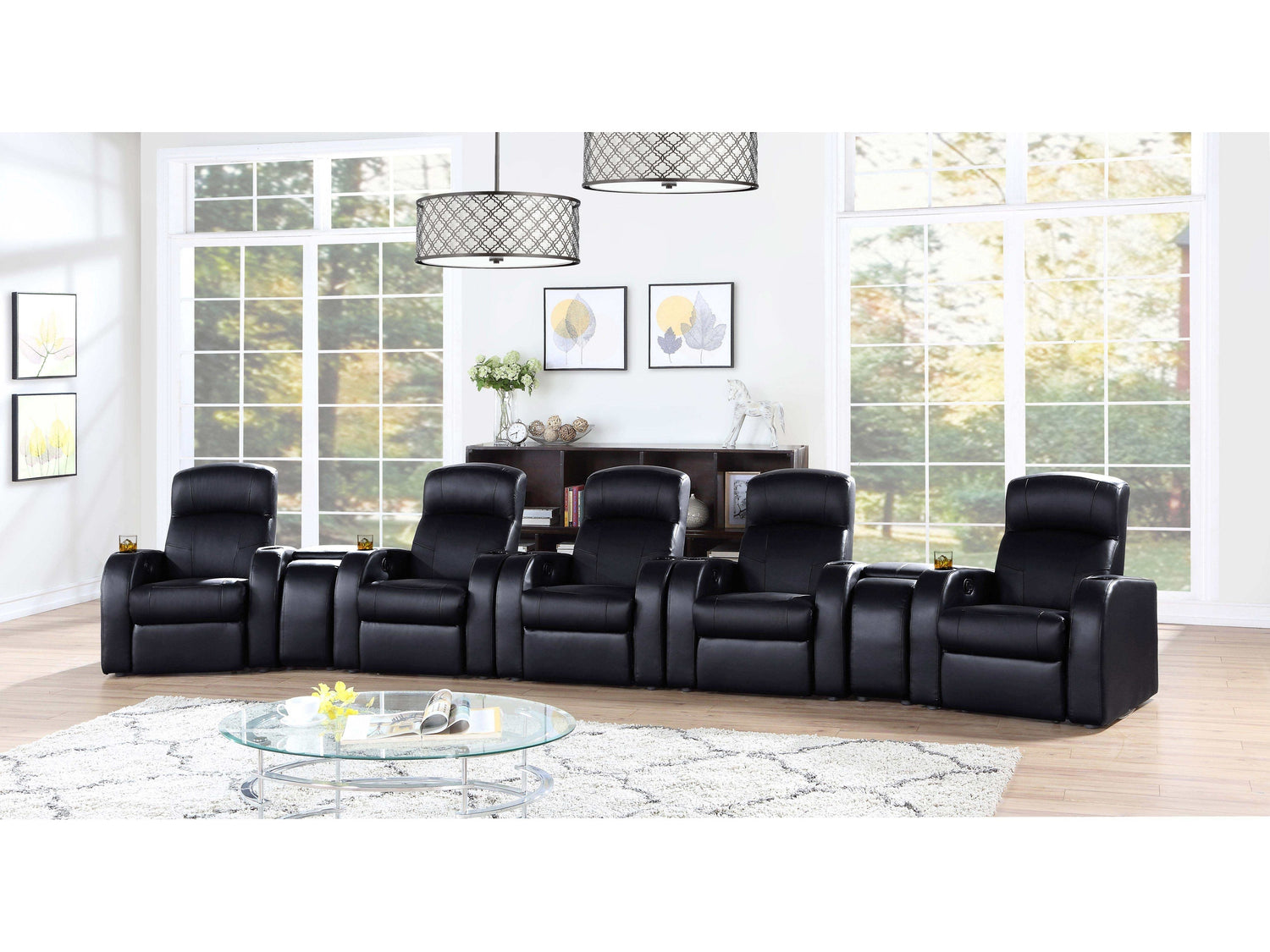 Home theater collection upholstered in black top grain leather everywhere the body touches