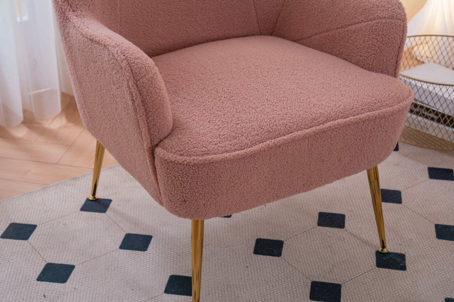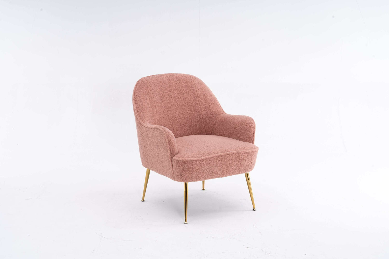 Transform your space with this elegant and comfortable accent chair. Whether you're relaxing with a book or simply need a stylish seat, this chair is designed to meet your needs in both comfort and aesthetics. Upgrade your decor with our Modern Soft Pink Teddy Fabric Accent Chair today!