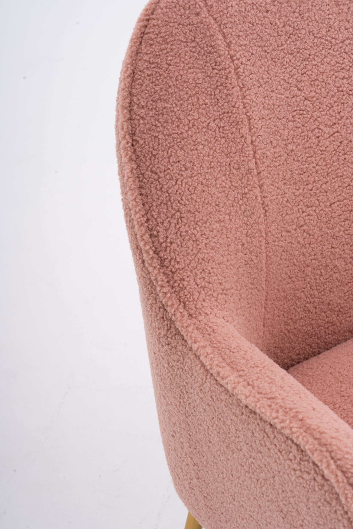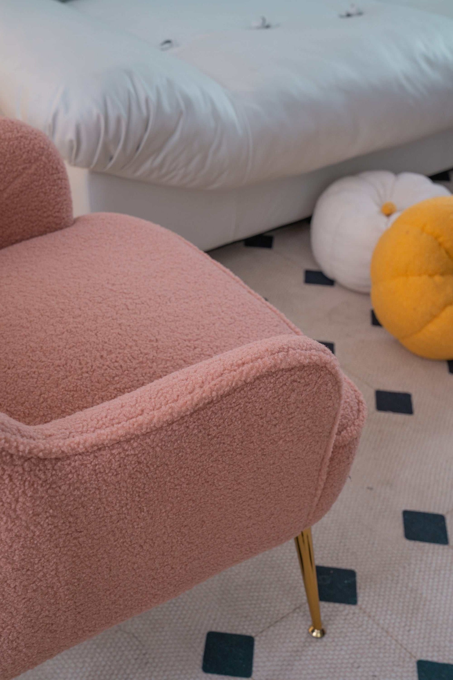 Elevate your living space with our ergonomically designed Modern Soft Pink Teddy Fabric Accent Chair. This chair is meticulously crafted with soft and plush Teddy fabric in a charming pink shade, offering a cozy and inviting seat. The elegant gold legs not only provide stability but also add a touch of sophistication to any room. Whether in the living room, bedroom, or any indoor space, this chair is tailored for both comfort and style. It even features adjustable legs for a customized seating experience.