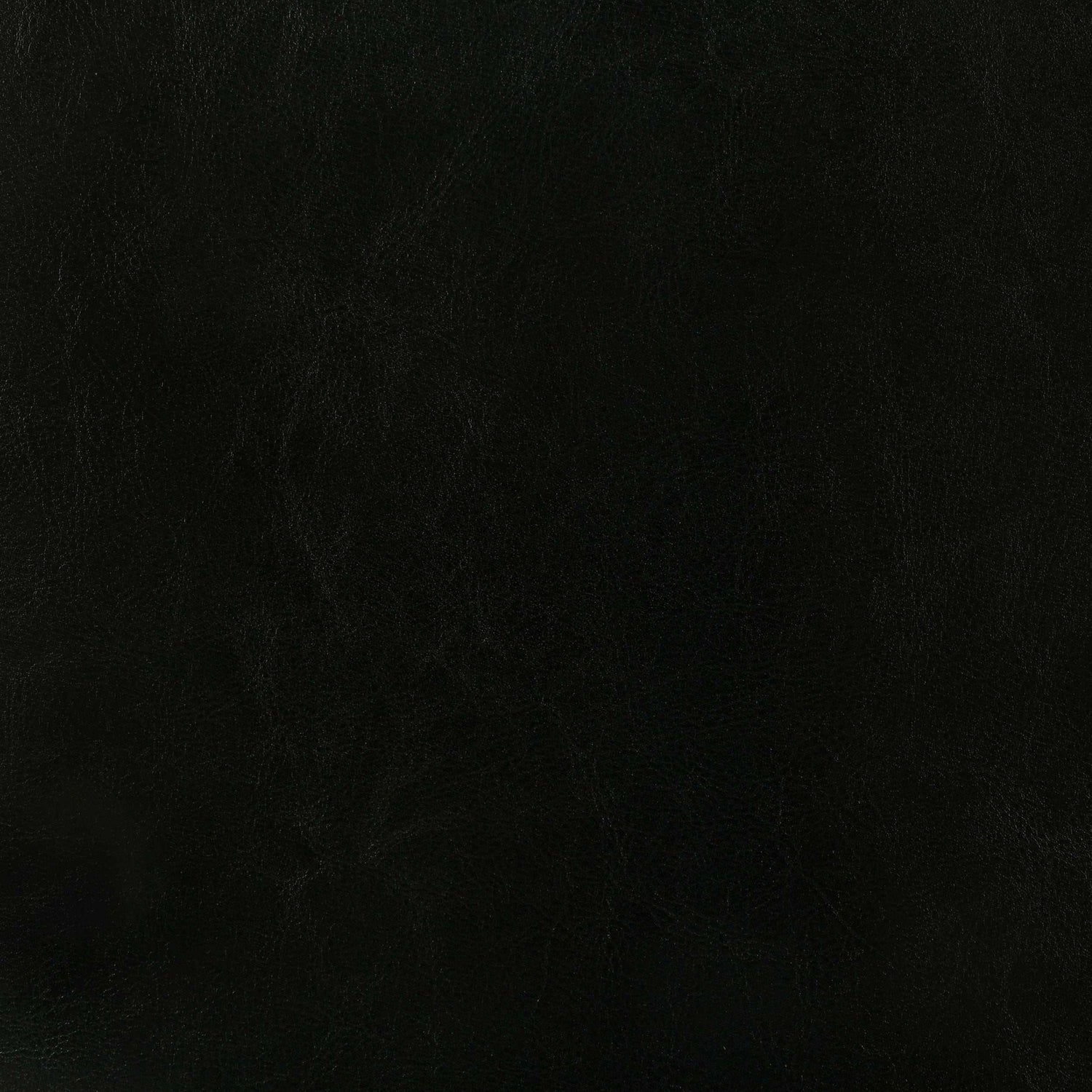 Ladder back chairs have upholstered seat cushions in black leatherette