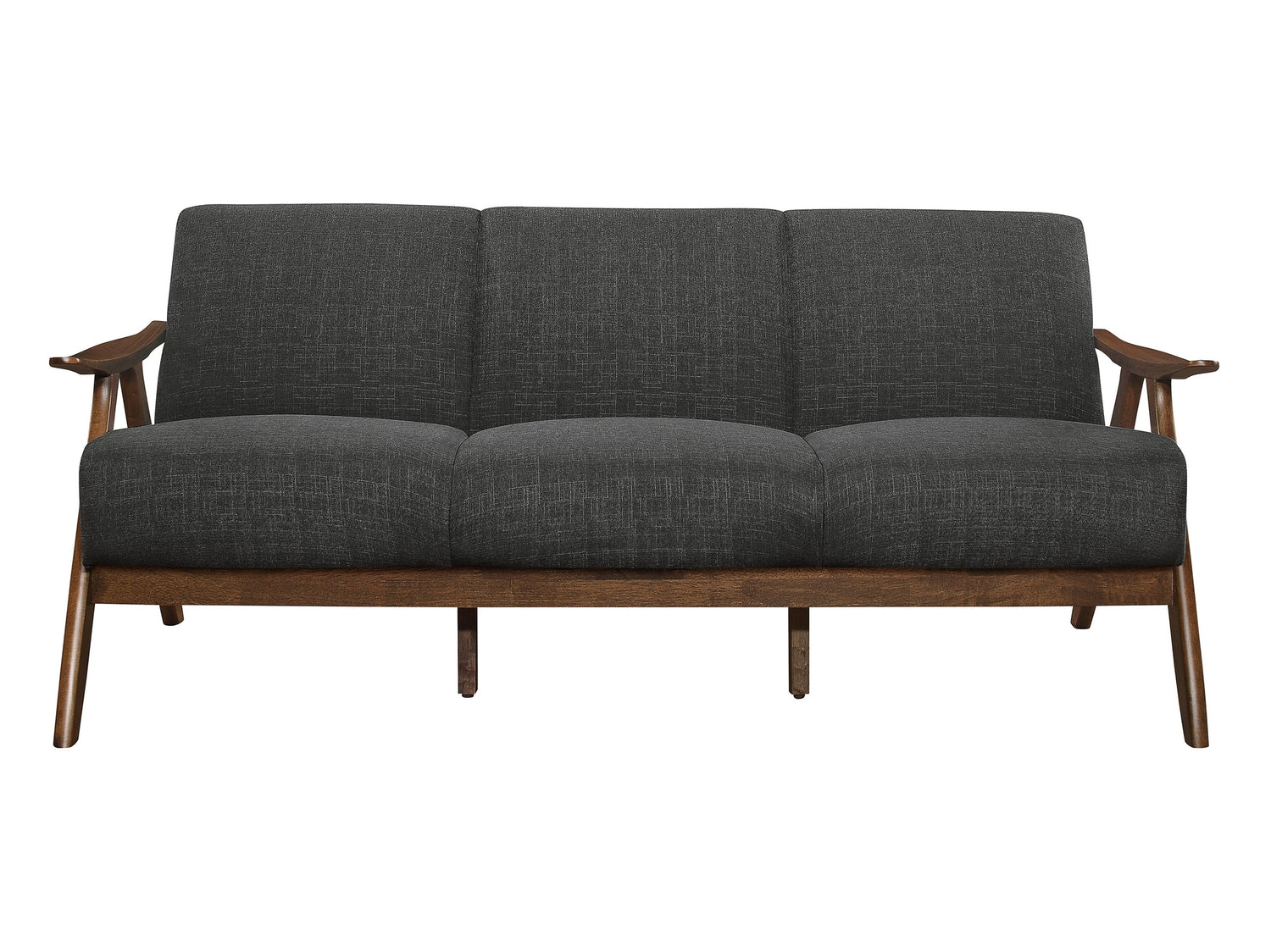 The retro-inspired wood framing of the Damala Collection will perfectly accent your modern home décor. Subtle contouring to the sofa’s wood frame is finished in walnut, presenting as a classic complement to the dark gray fabric that covers the padded sofa’s seat and back.