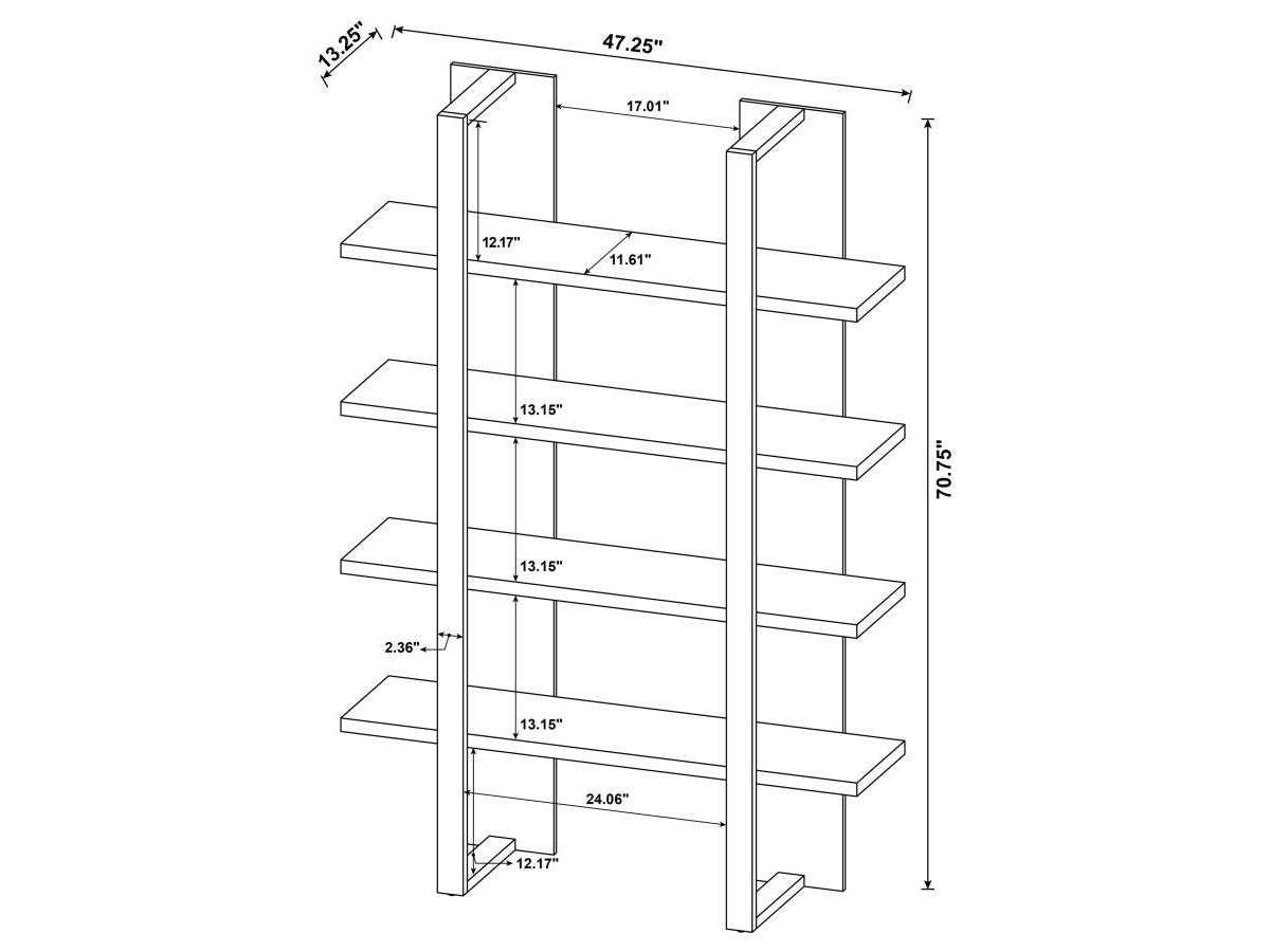 - Bookcase: 47.25"W x 13.25"D x 70.75"H