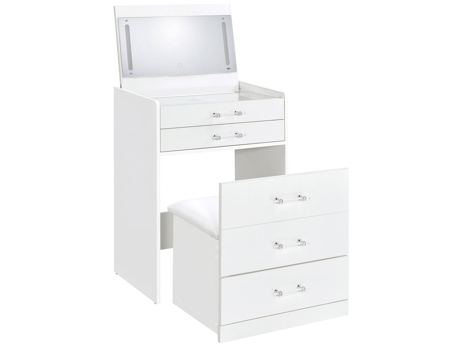 - Includes: One (1) vanity set- White high gloss makeup vanity set crafted from engineered wood with eco