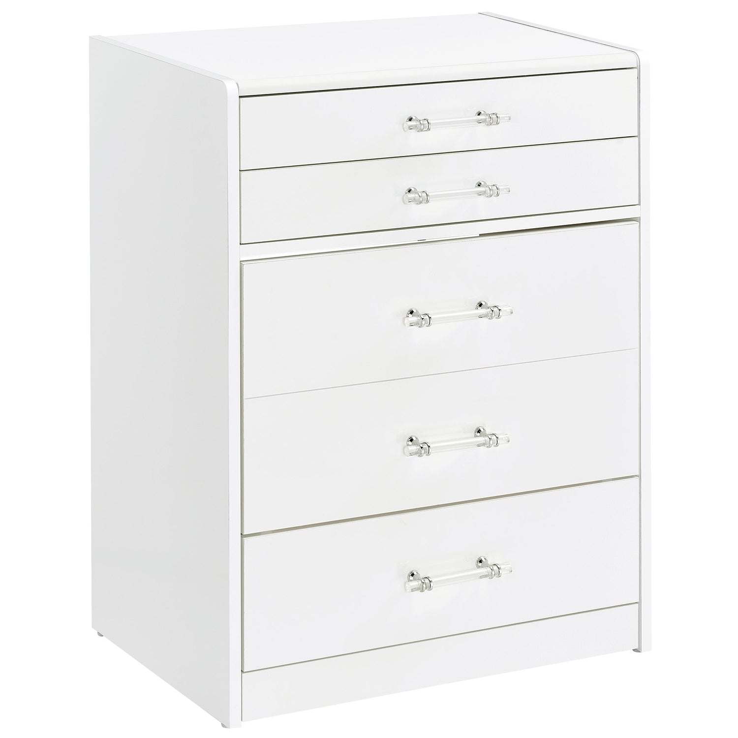 - Clear acrylic with chrome pull handles add a modern, elegant touch