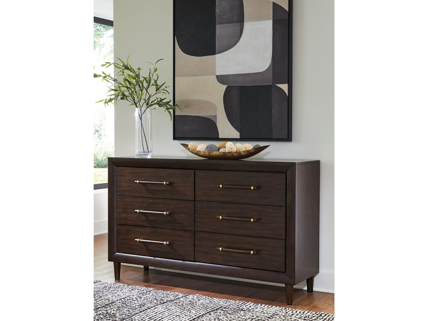 - Solid wood pulls with brass-tone metal accents;6 smooth-gliding drawers with fully finished interiors, French/English dovetail construction and heavy-duty ball-bearing side glides