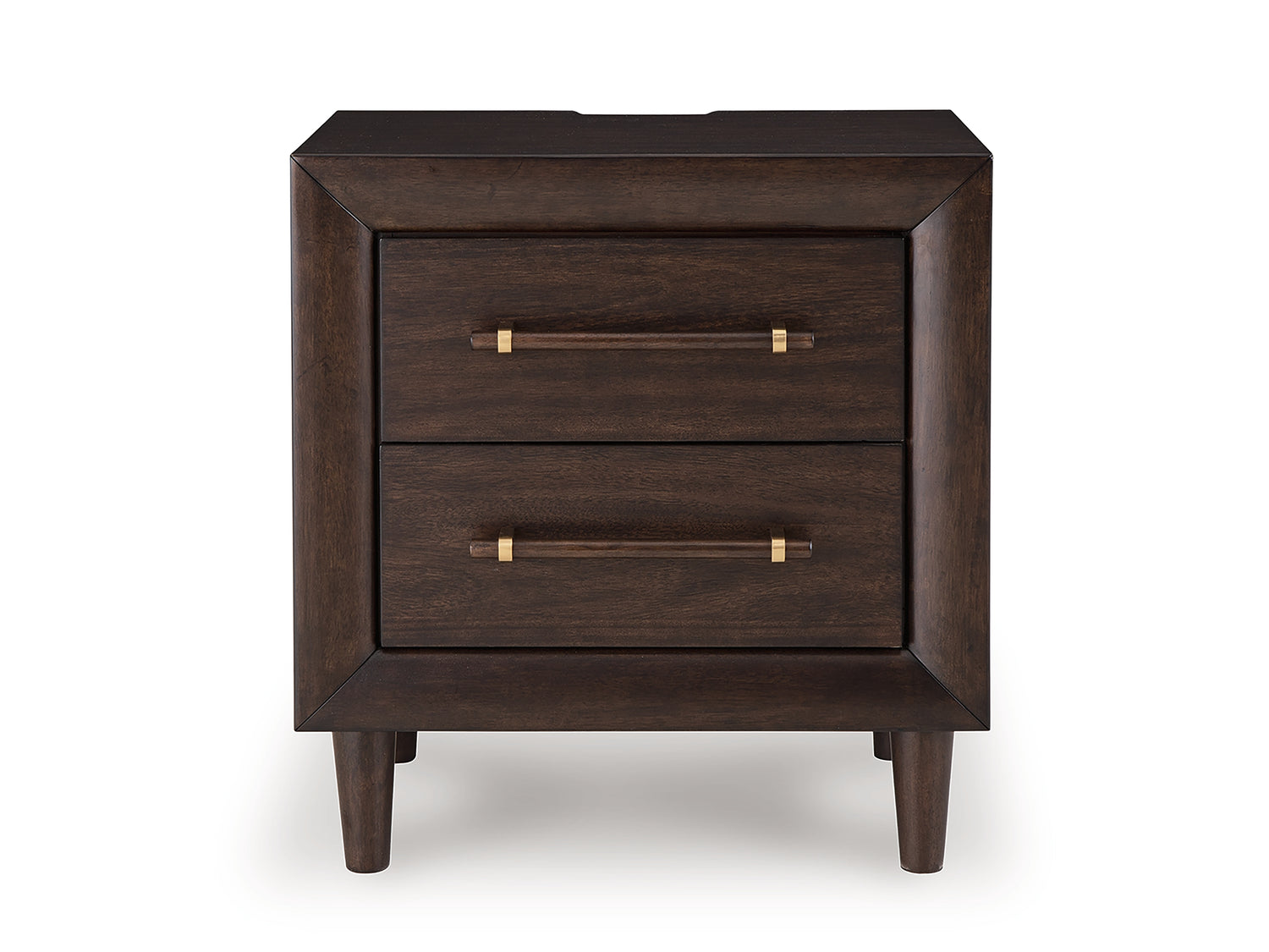 - Solid wood pulls with brass-tone metal accents;2 smooth-gliding drawers with fully finished interiors, French/English dovetail construction and heavy-duty ball-bearing side glides