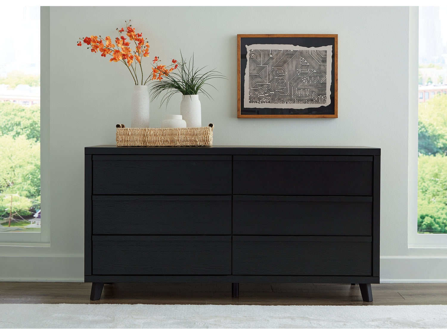 Sophisticated style for the savvy shopper. This dresser prioritizes affordable, on-trend design. Its subtle replicated texture recalls the natural beauty of wood, highlighting the slatted styling. And a matte black finish savvily suits different approaches to modern aesthetics. Mix and match with light and bright hues, or pair with other dark tones for a moody look.