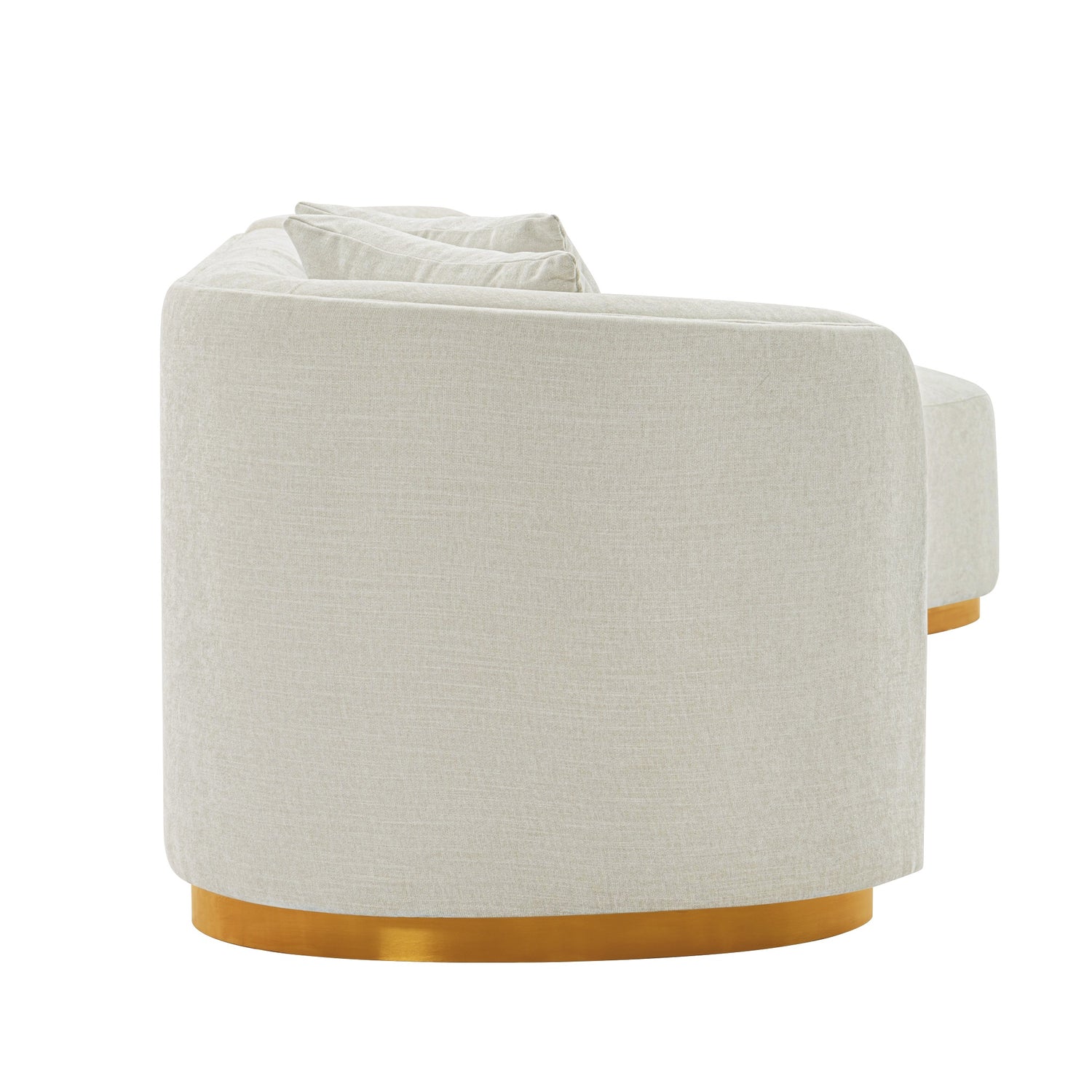 - Elegant 2-Piece Sectional with Golden Mop Base. Includes 2 Square Accent Pillows.