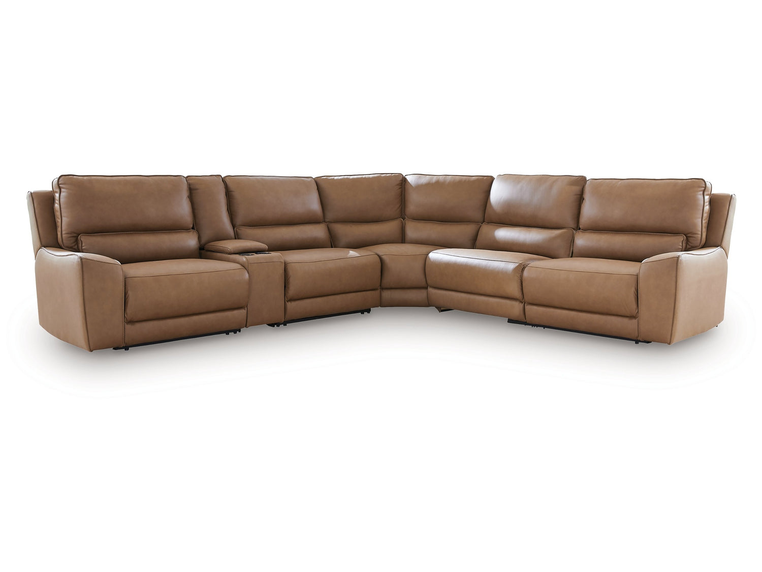DeepWakes Caramel 6-Piece Reclining Sectional with Storage Console