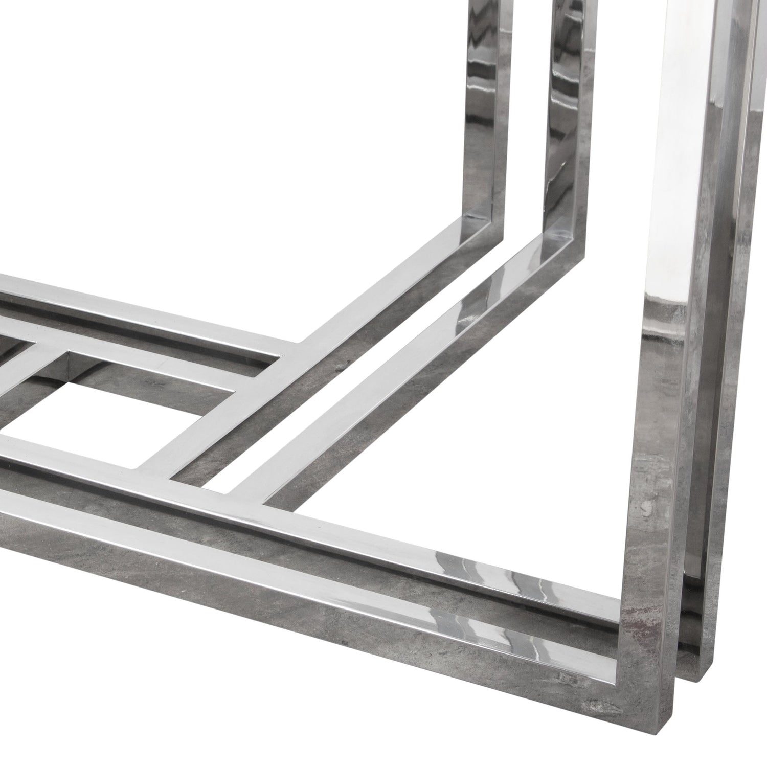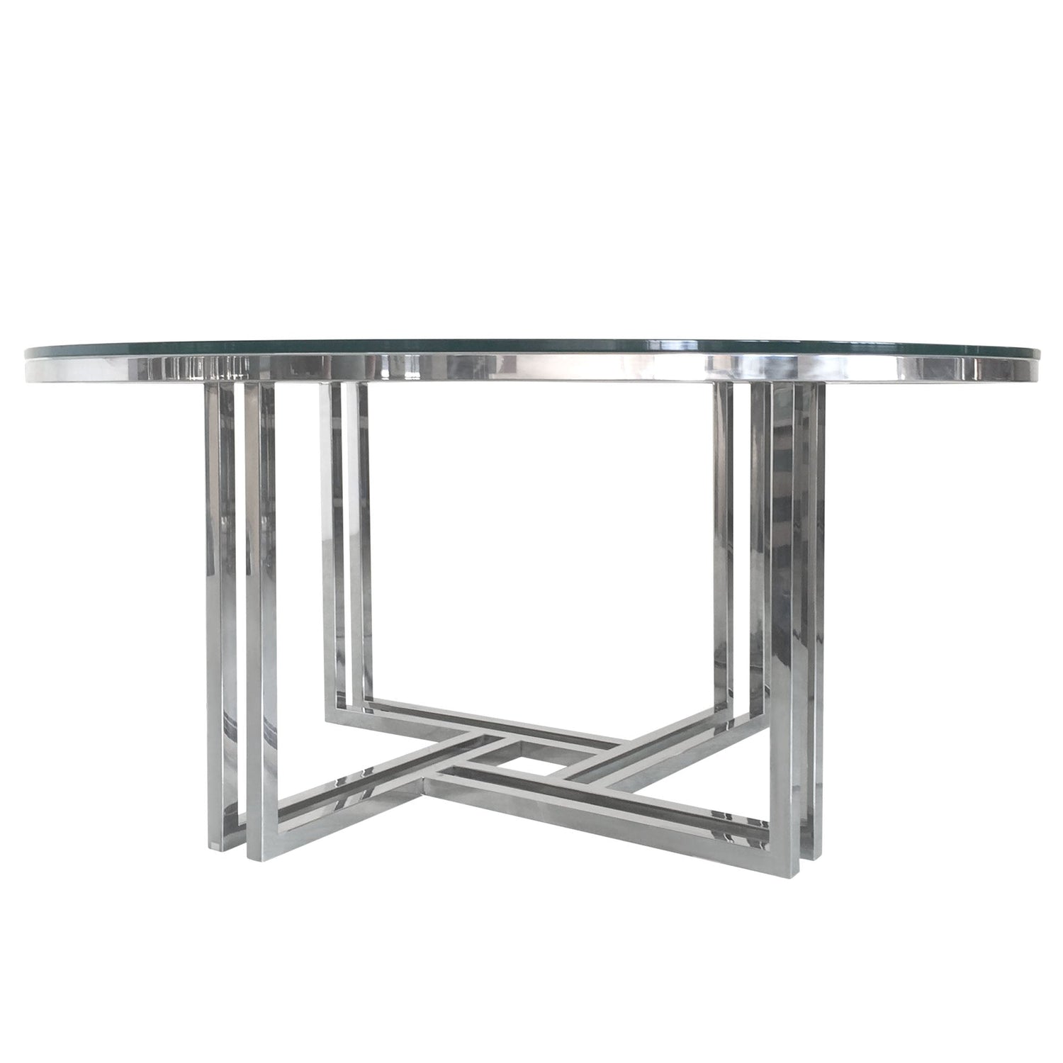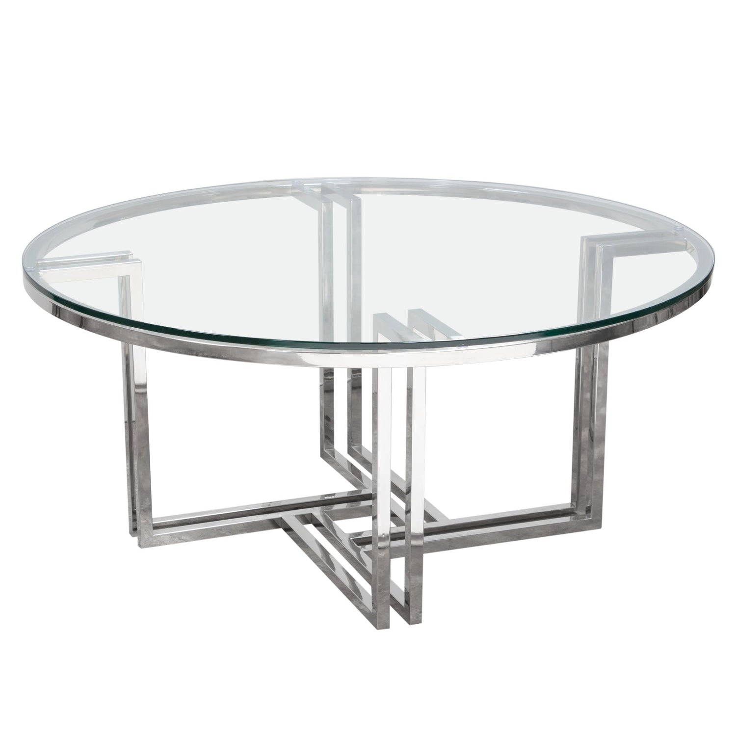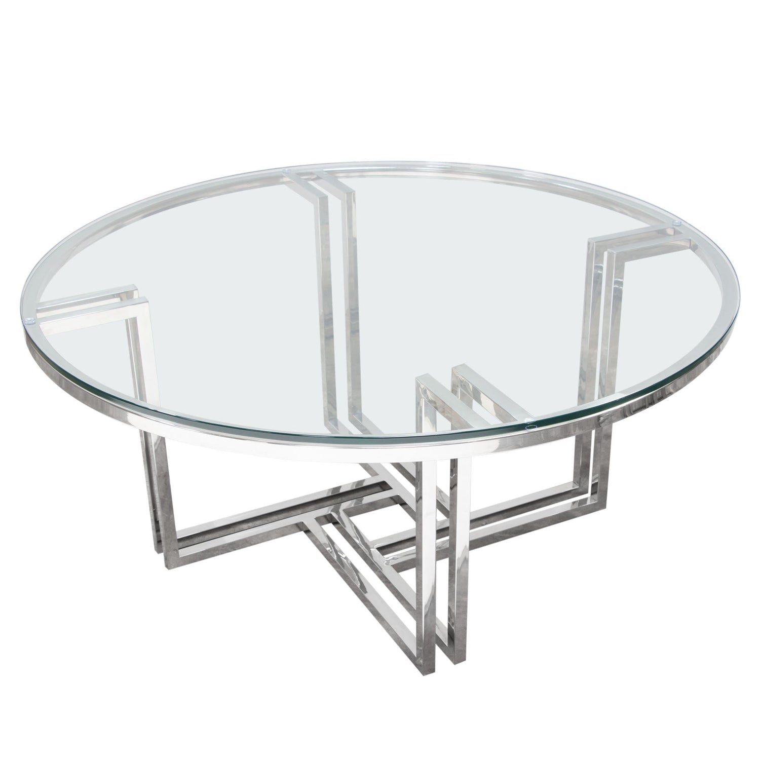 -Deco inspired 40' Round Coffee Table is exquisitely finished in an Artisan quality polished Stainless Steel.