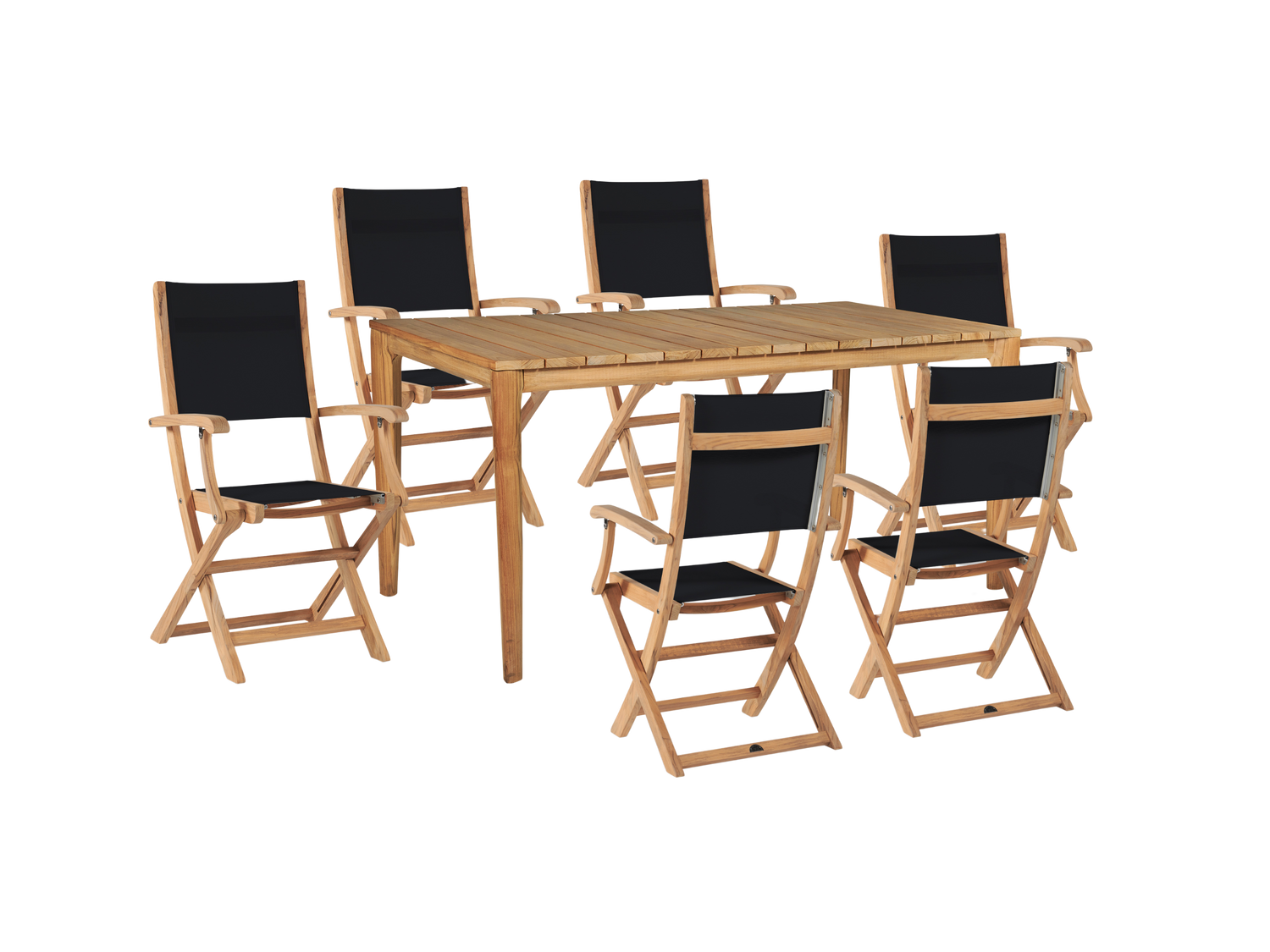 - Item Name: Del Ray 7-Piece Rectangular Teak Black Outdoor Dining Set with Folding Armchairs