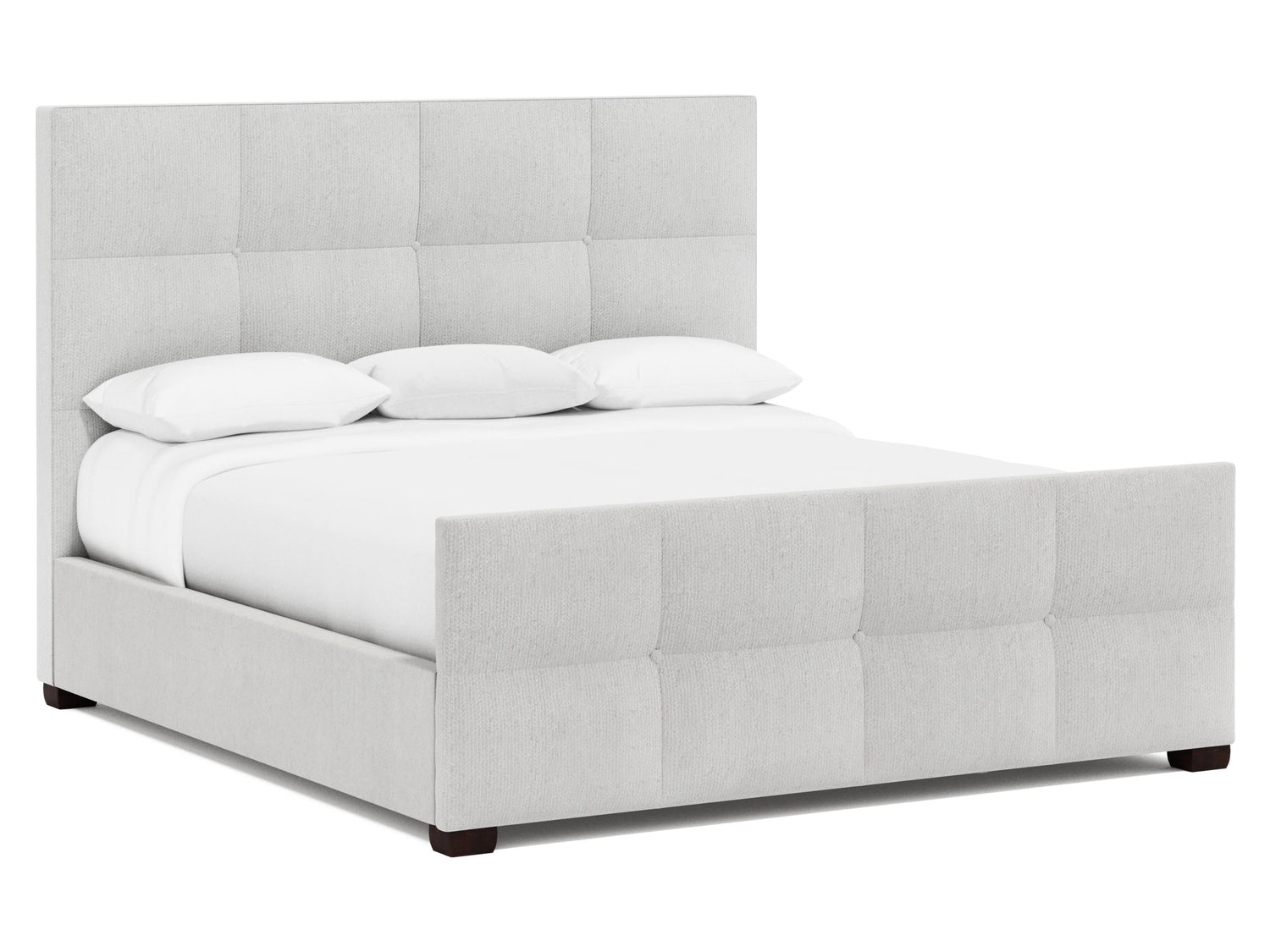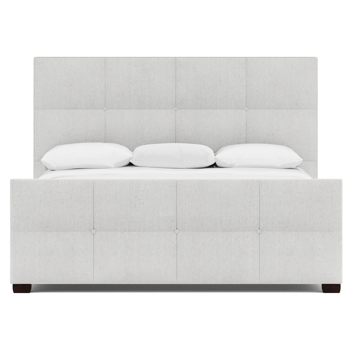 - Fully upholstered button-tufted headboard and footboard