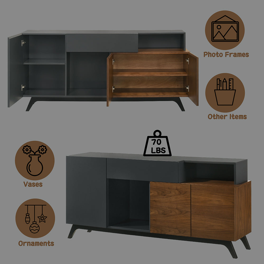 - Material: Wood, Composite Wood, Veneer- Color: Walnut Finish