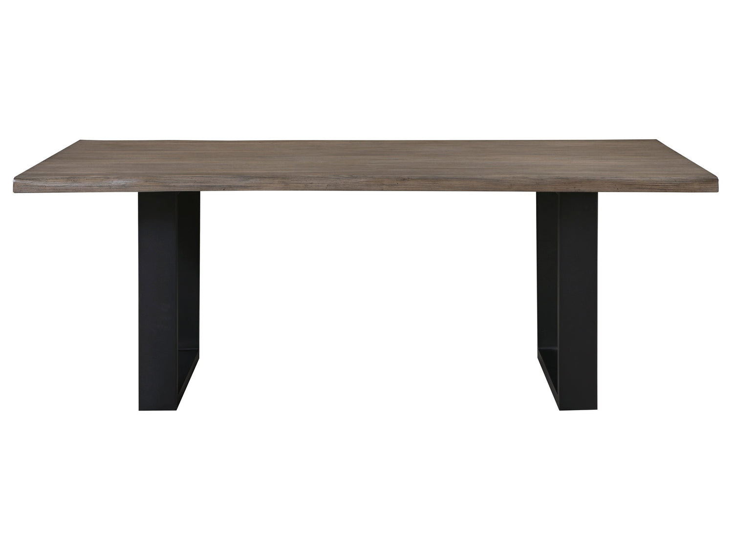 Create a modern and inviting dining space with this oak veneer dining table. Featuring a tabletop crafted from oak veneer and engineered wood in a natural oak finish, paired with a sleek black powder-coated metal base, this table offers a blend of rustic warmth and contemporary style. Comfortably seating six, it's perfect for family meals or dinner parties. The durable construction and minimalist design make this table a versatile and stylish centerpiece for any dining room or kitchen. Assembly is required.