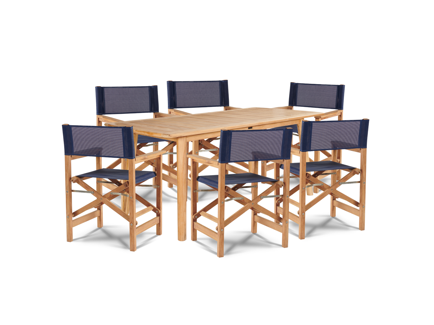 - Item Name: Director 7-Piece Teak Blue Outdoor Family Dining Set with Folding Armchairs