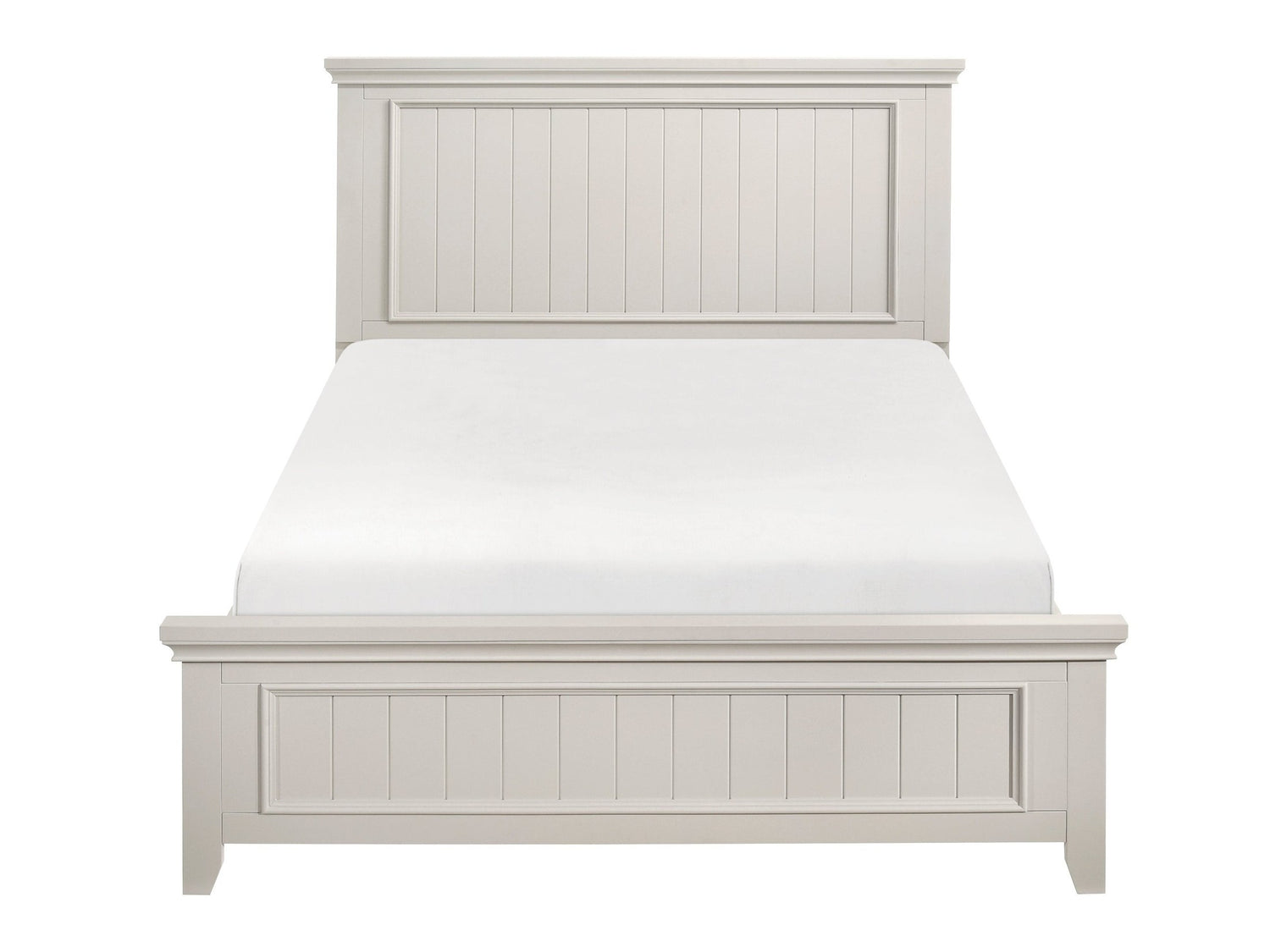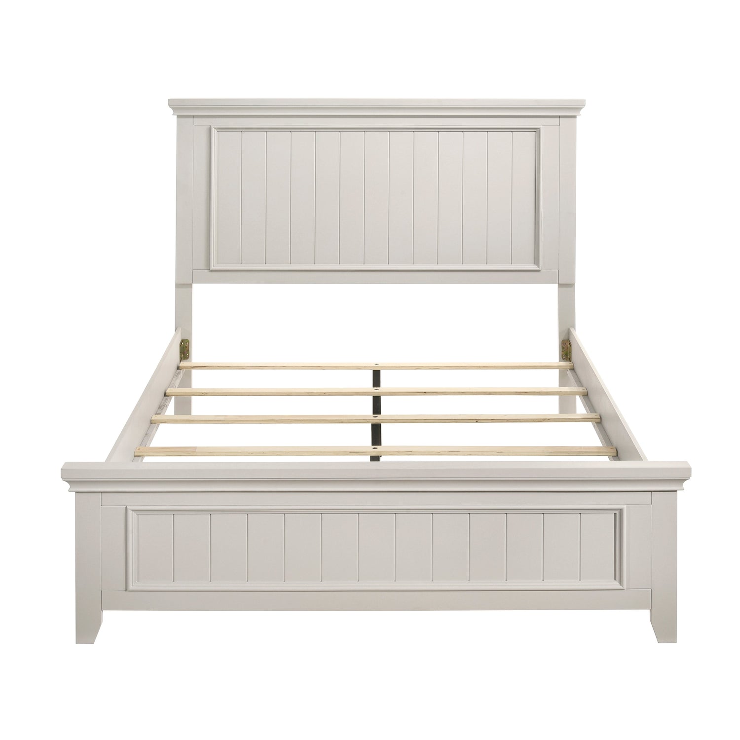 Hints of farmhouse living create the look of the Donahue Collection. The white finish of the collection is a subtle canvas for your bedroom’s décor. Framed shiplap-inspired panels lend a classic decorative accent to the California King size bed.