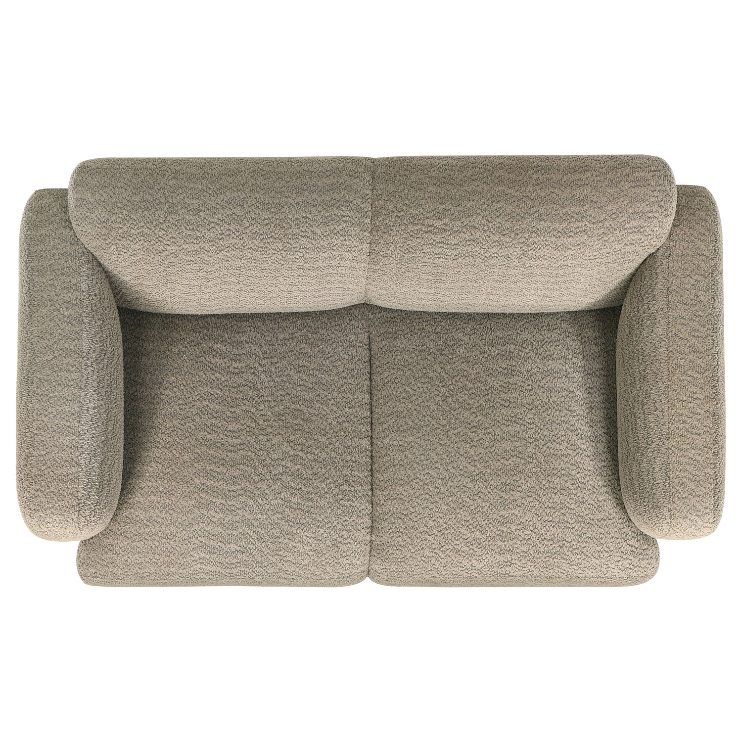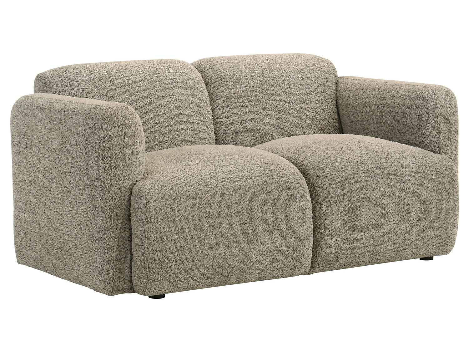 - Two-seat loveseat with low-profile, sculptural silhouette and soft, rounded edges,