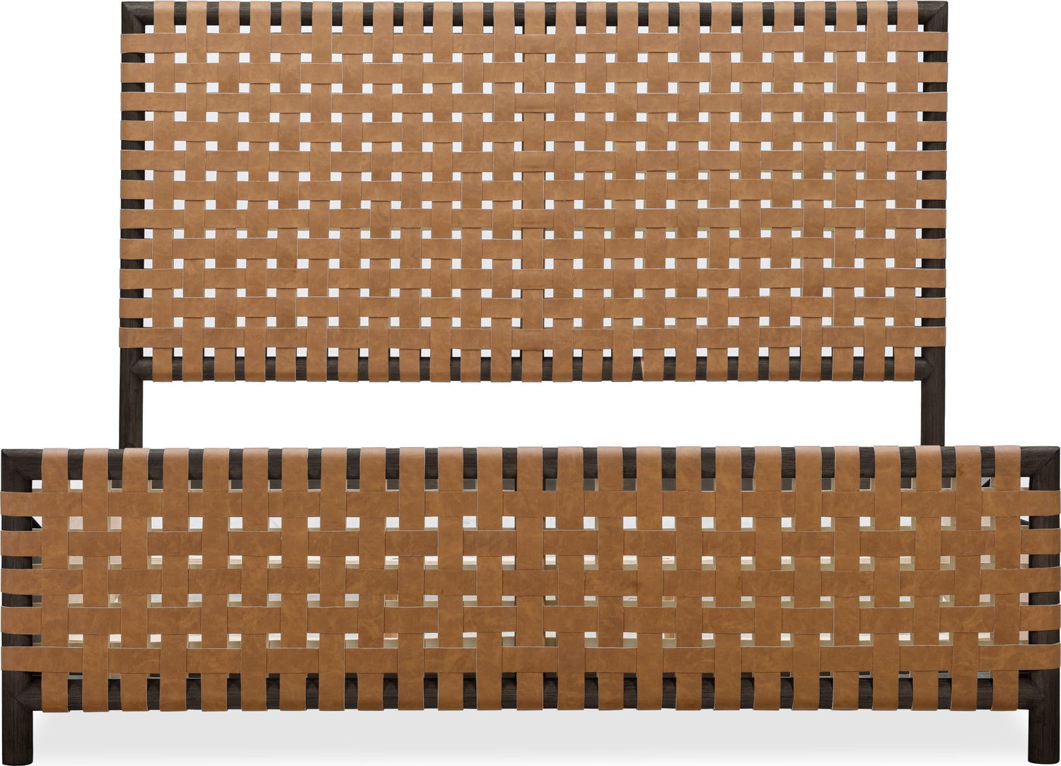 - Distinctive head and footboard are hand woven using strips of soft, durable synthetic leather