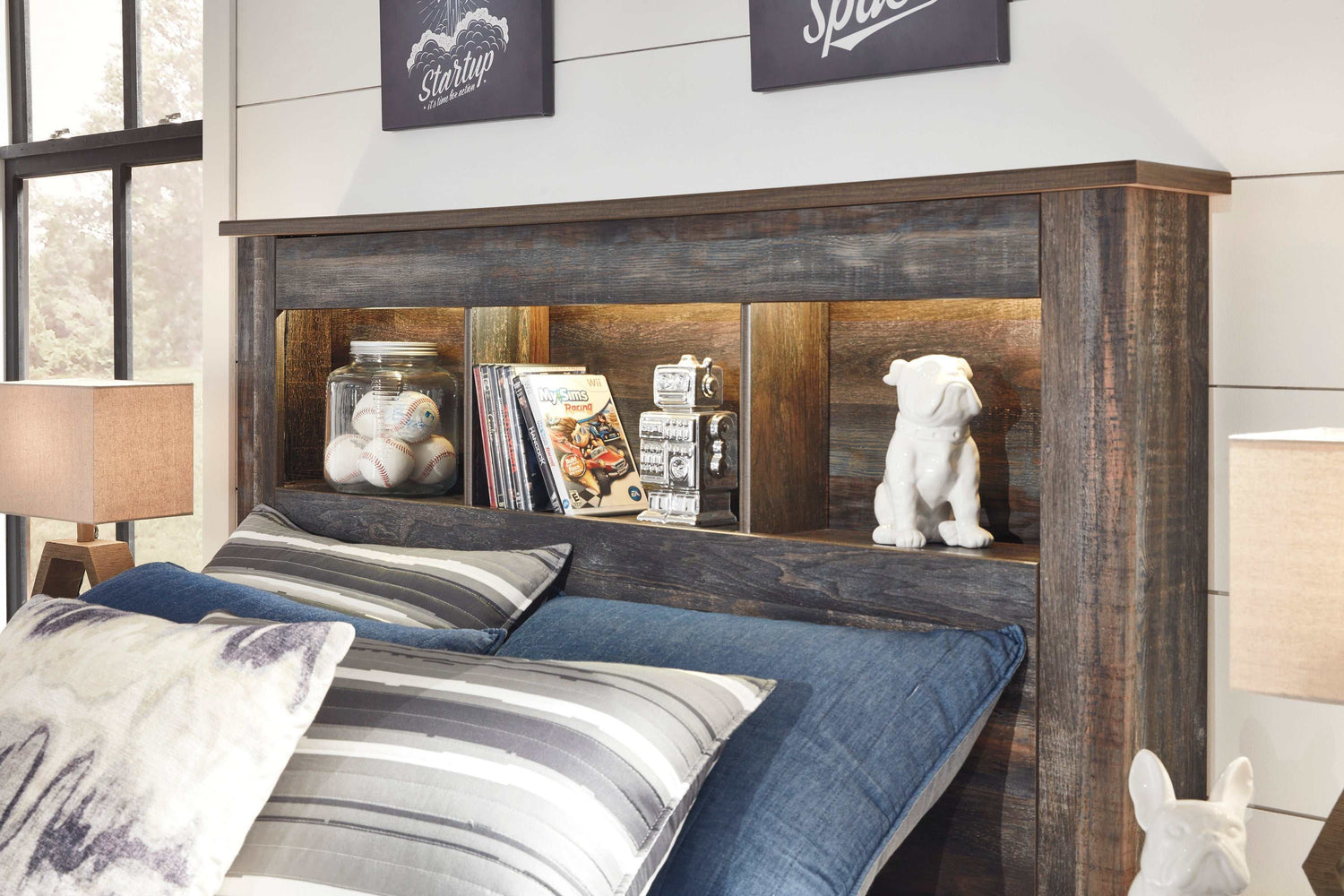 Drystan Multi Tone Queen Bed w/ 4 Storage Drawers & Bookcase HB