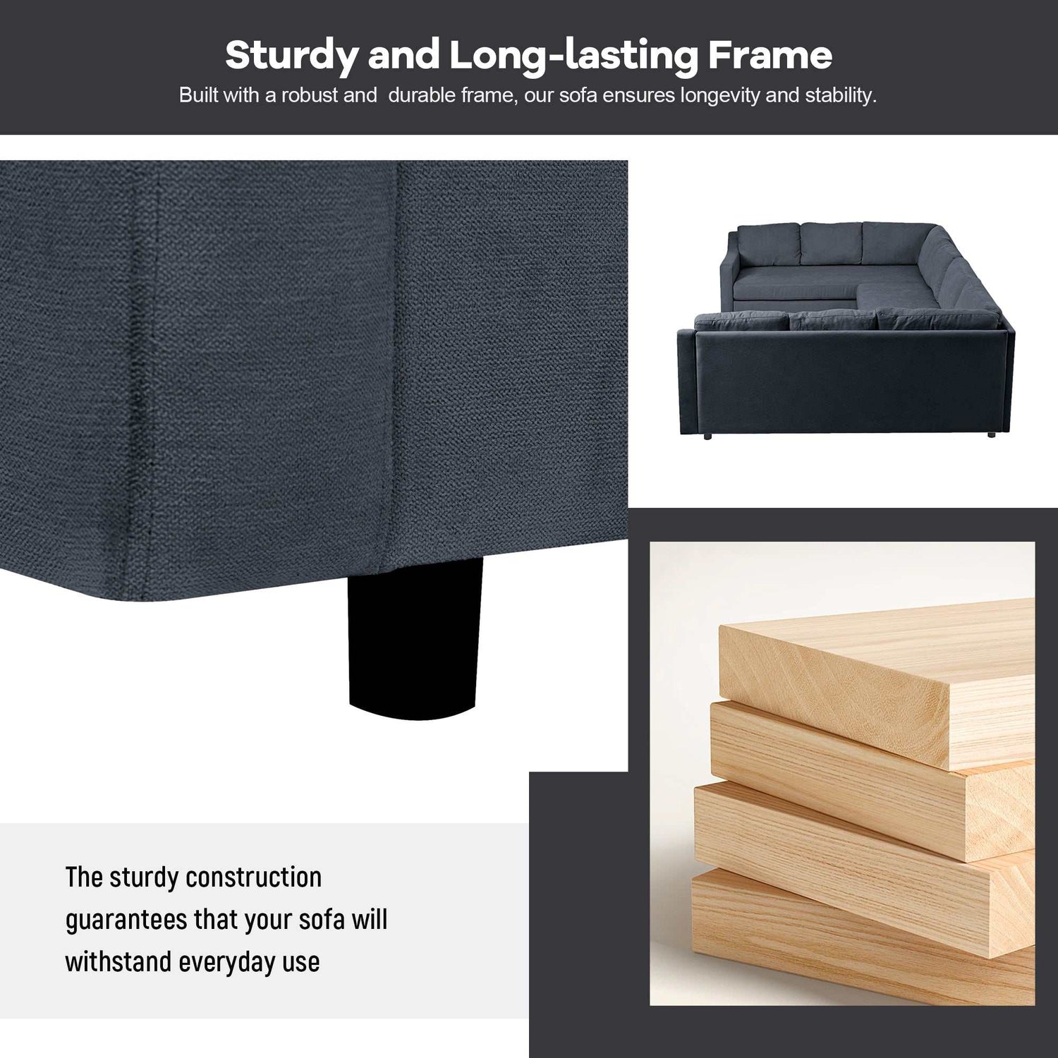 Are you looking for a spacious and sturdy sofa that can accommodate a large group of people? Look no further! Our U-Shaped Sofa is designed with three parts, providing ample seating space for 6-8 individuals. Whether you're hosting a family movie night, entertaining friends, or simply enjoying a cozy evening with loved ones, this sofa is the ideal choice for creating a comfortable and inviting atmosphere.